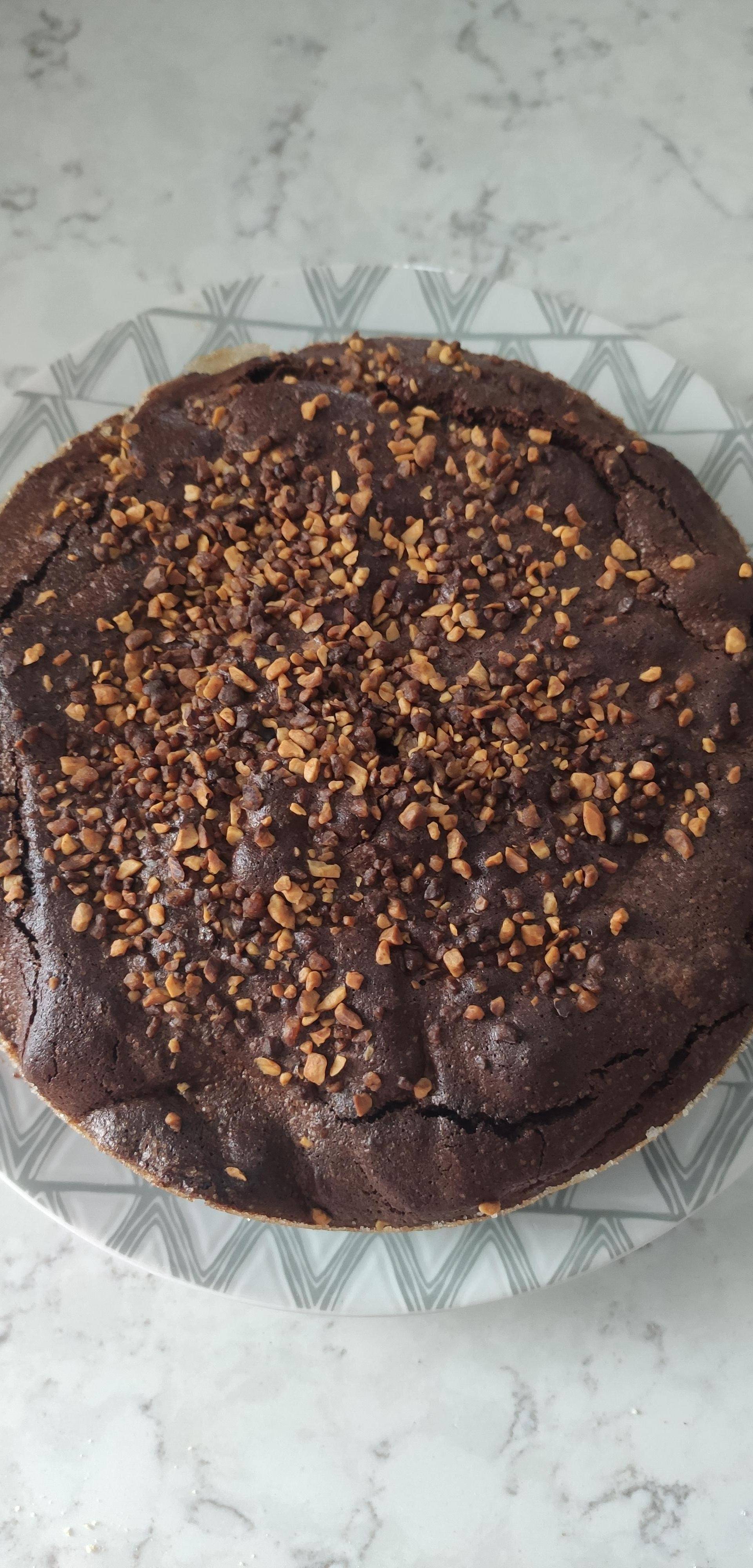 Mettre la pâte dans un moule préalablement beurré. Parsemez le dessus de pralin.