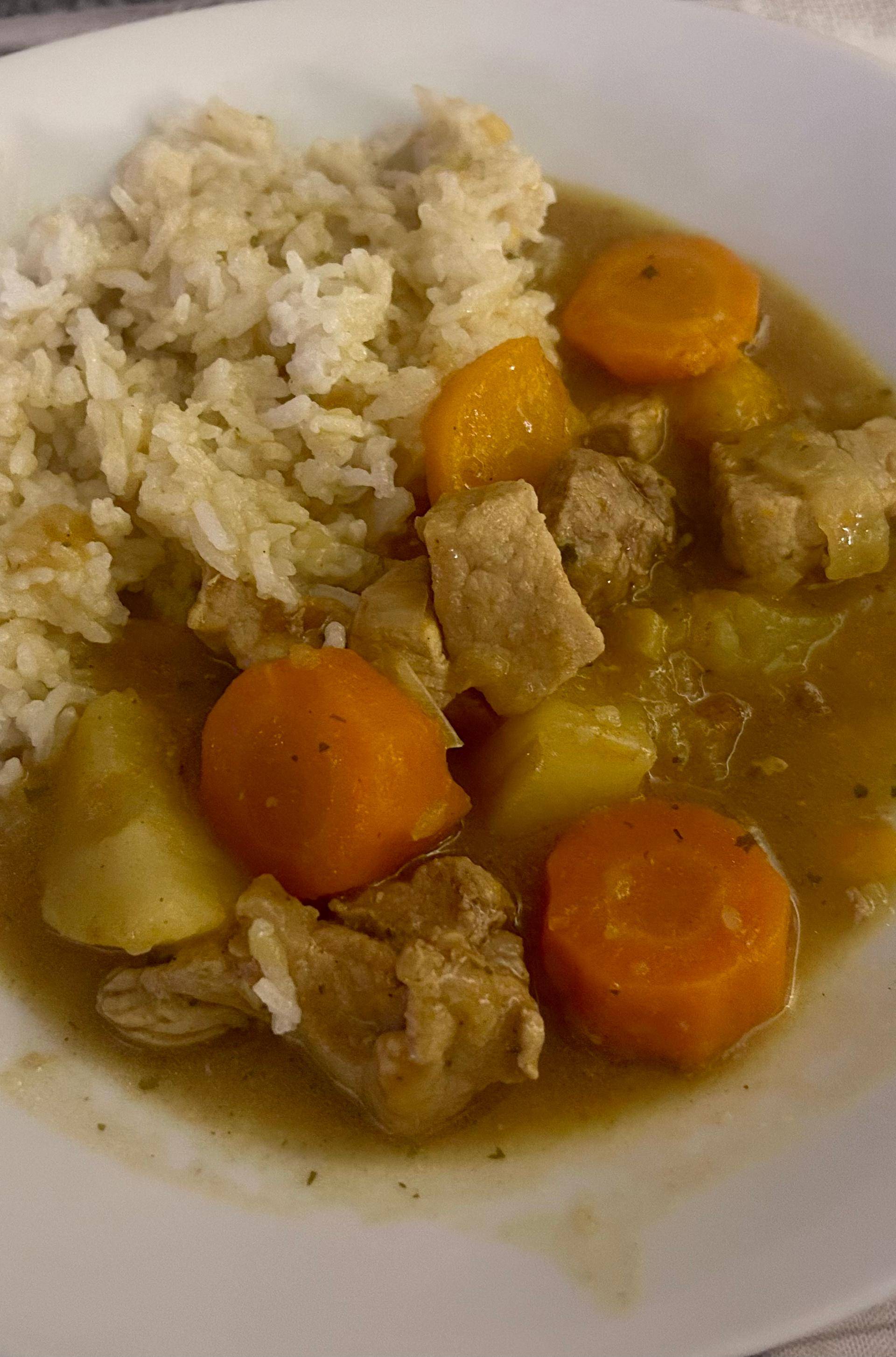 Ajoutez les pommes de terre, les carottes et l’eau en mélangeant bien. Incorporer les quatre cubes de golden curry, puis ajoutez ensuite le gingembre et la coriandre.