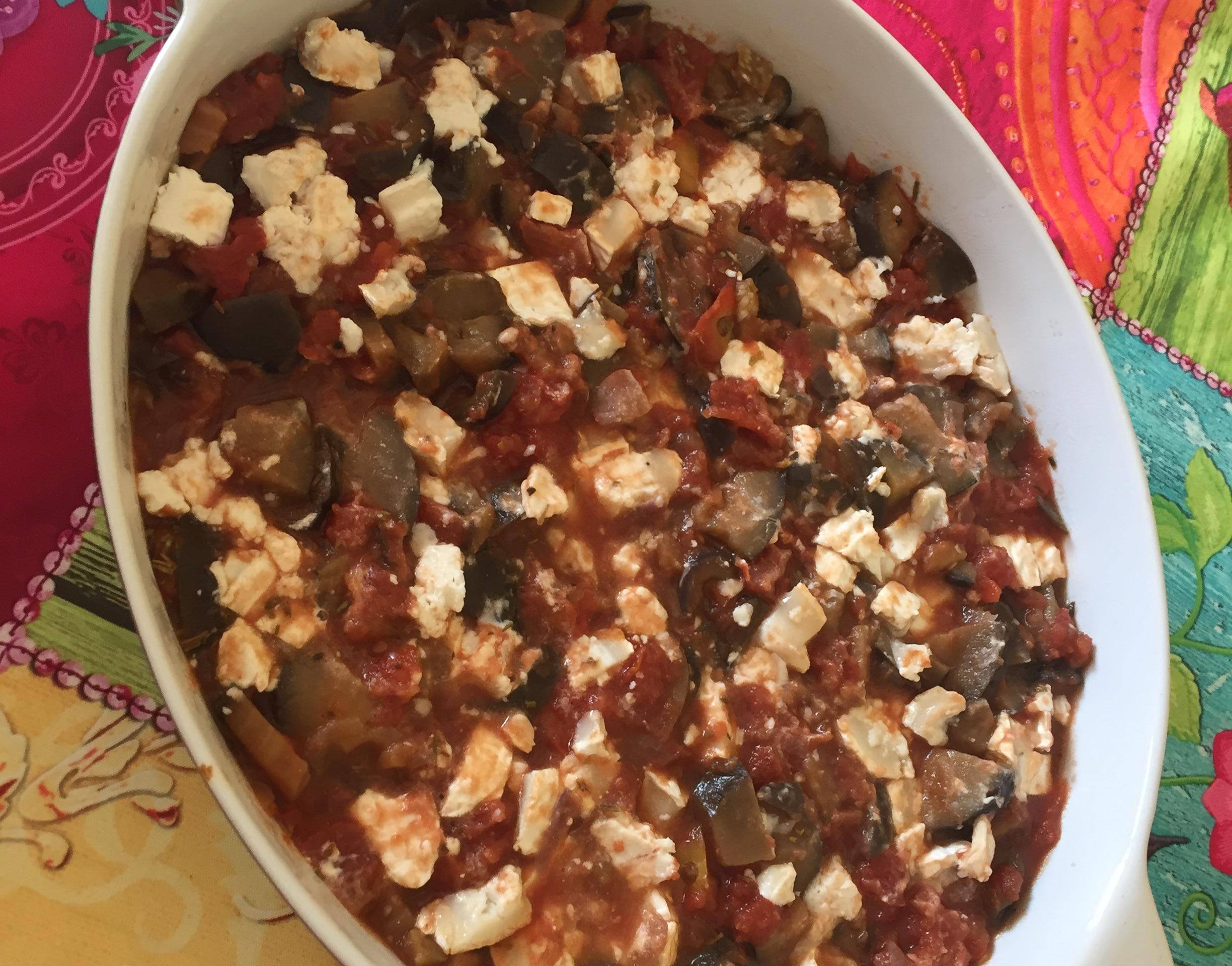 Mettre la préparation dans un plat à gratin et y ajouter des cubes de chèvre et au four pendant 30 minutes (selon goût rajouter de l’emmental pour gratiner.