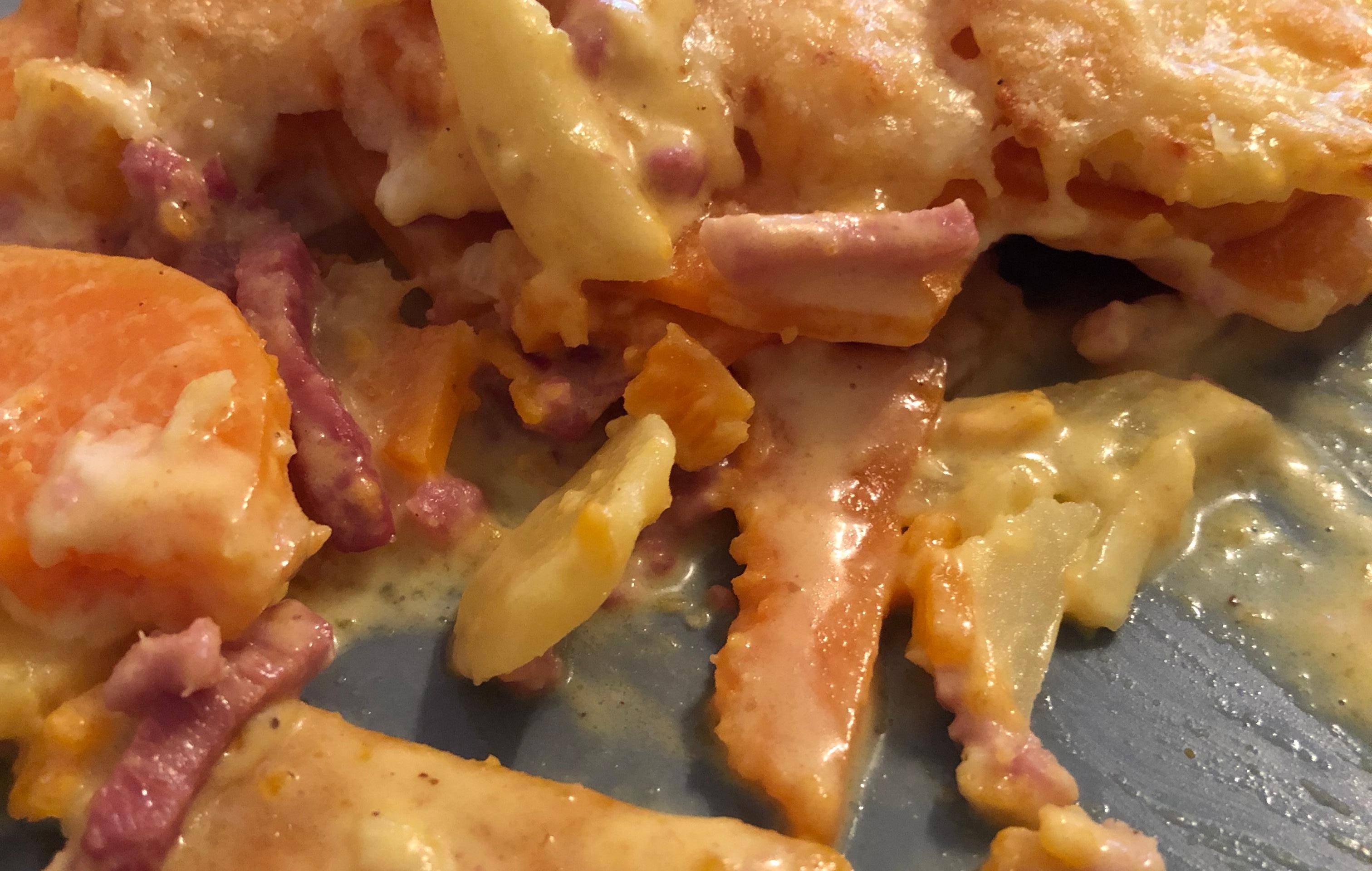 Transvaser le contenu du bol dans un plat à gratin. Parsemer de formage râpé.