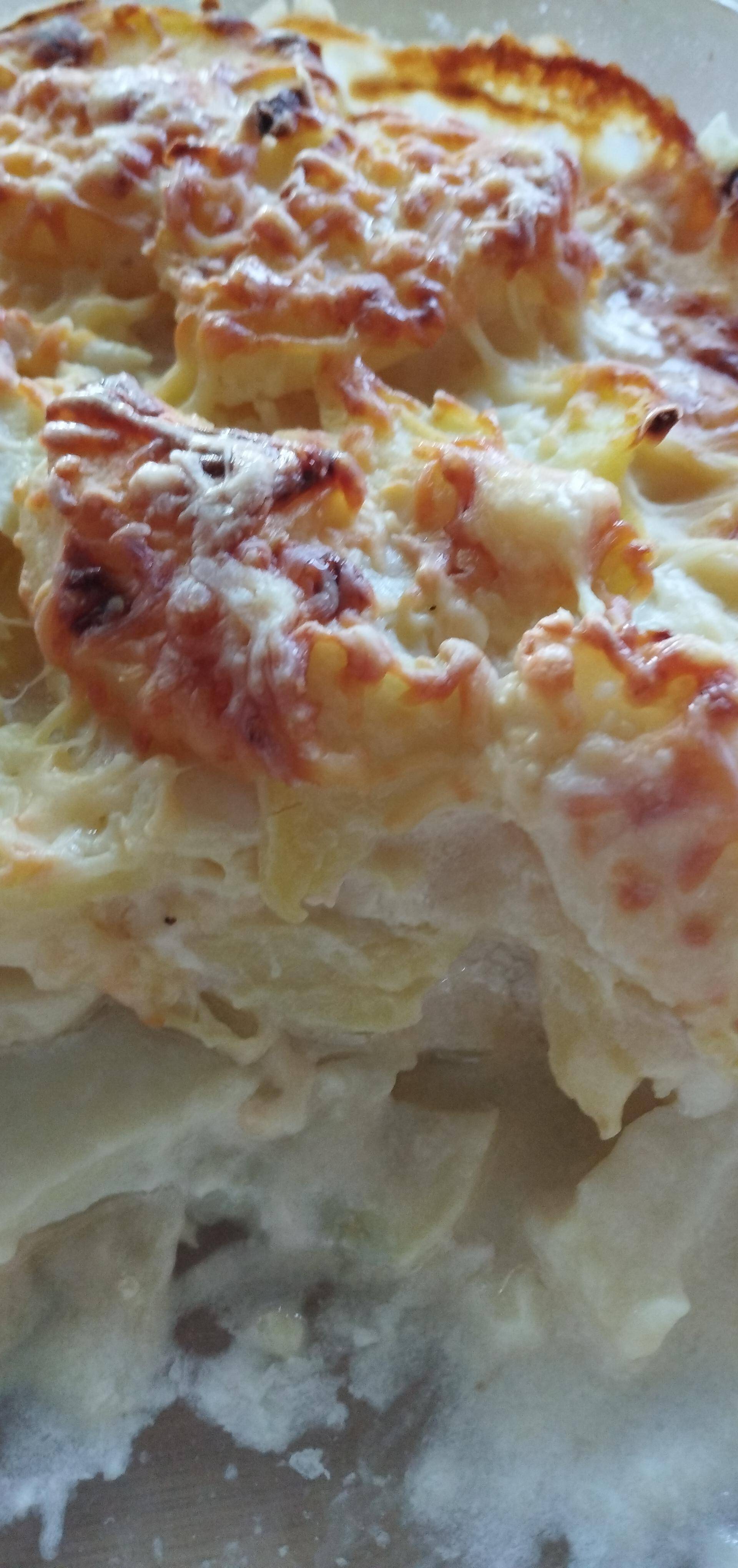 A la fin du programme. Dans un moule à gratin beurré ou huilé, verser une première couche de pommes de terre. Saupoudrer d'un peu de noix de muscade, saler, poivrer, déposer des tranches de camembert, ajouter le poulet, recouvrir de pommes de terre et recommencer jusqu'à épuisement des pommes de terre.