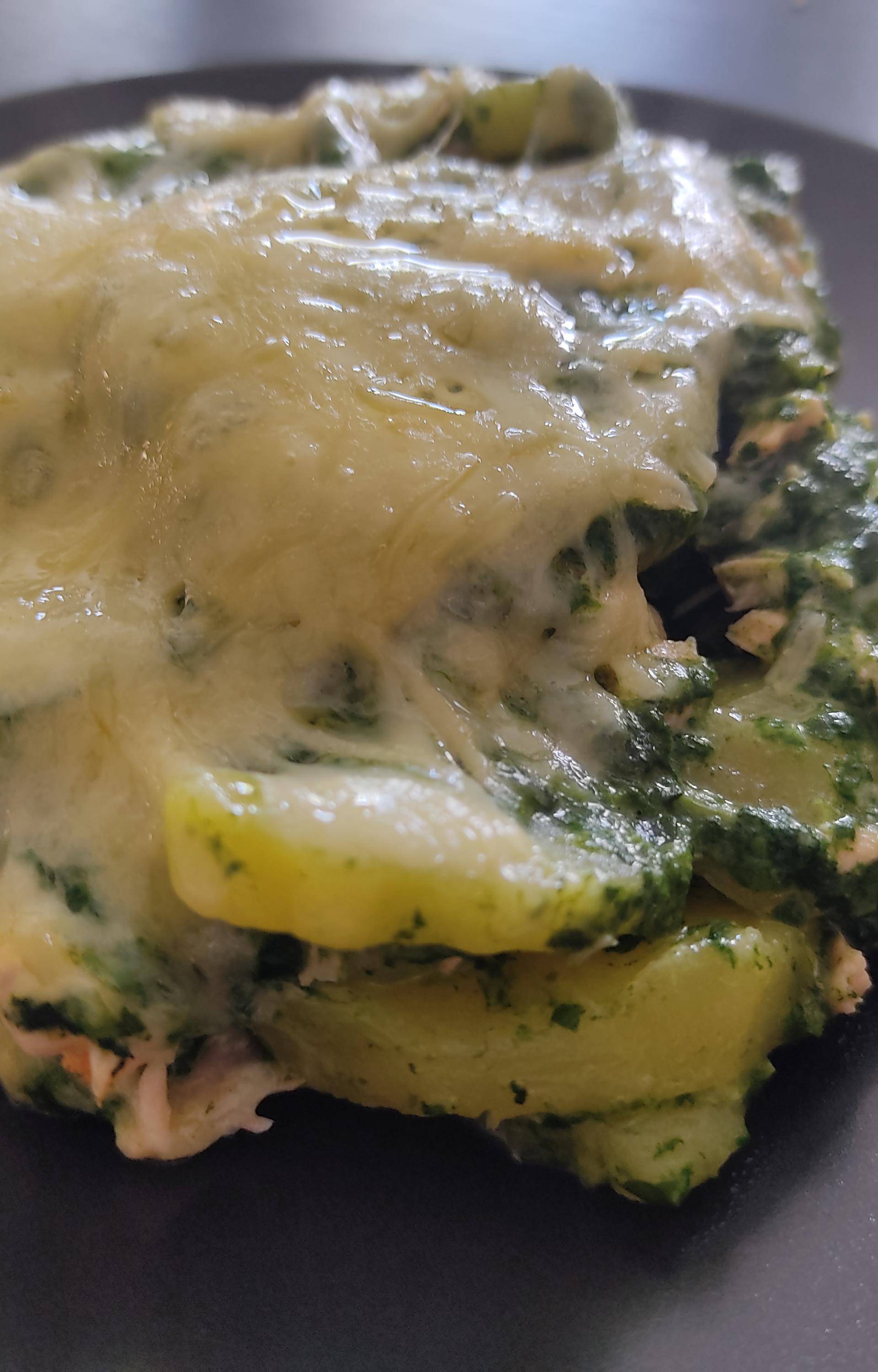 Dressage : mettre une couche d epinards une couche de coquillette et le saumon émietté Ajoute un peu de creme sauce soja et du fromage râpé Mettre au four a gratiner.