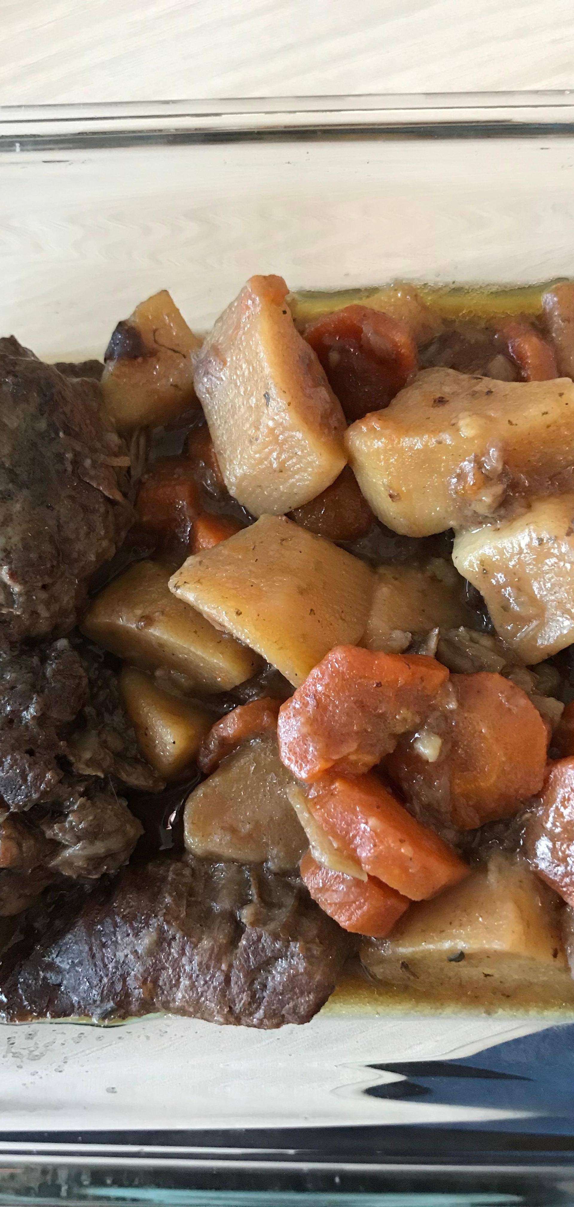 Jarret de bœuf avec os à moelle et ses petits légumes