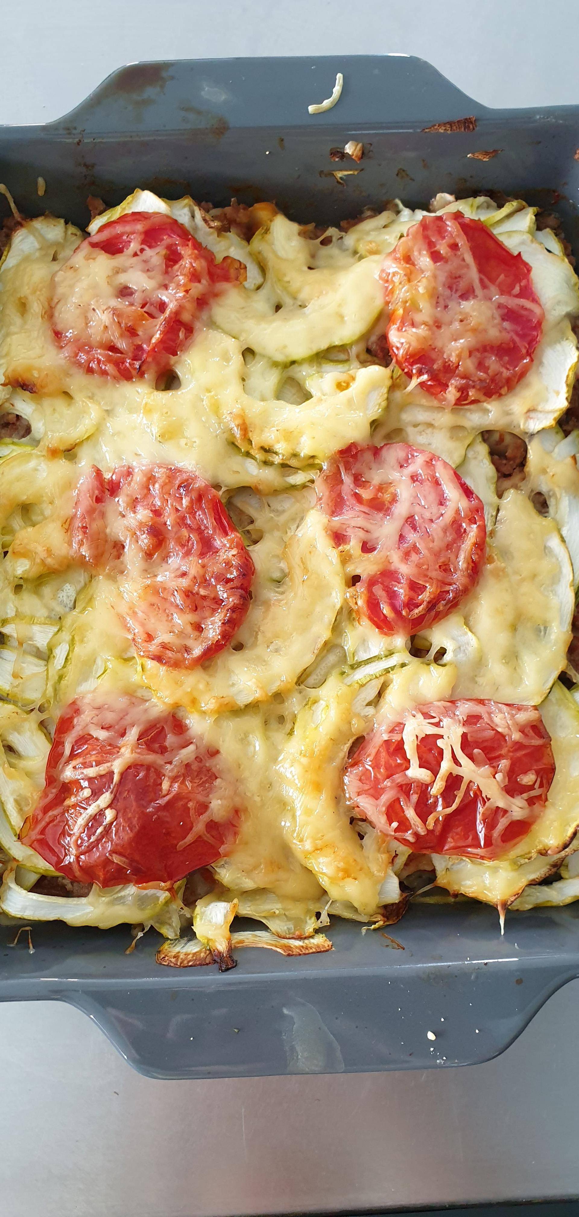 Dans un plat à gratin, altener une couche de courgettes puis une couche de tomates puis les lasagnes puis la sauce puis du gruyère et renouveler jusqu'à épuisement des préparations. Finir par des légumes et du gruyère. Bien tasser dans le plat. Four 180° pendant 40 min