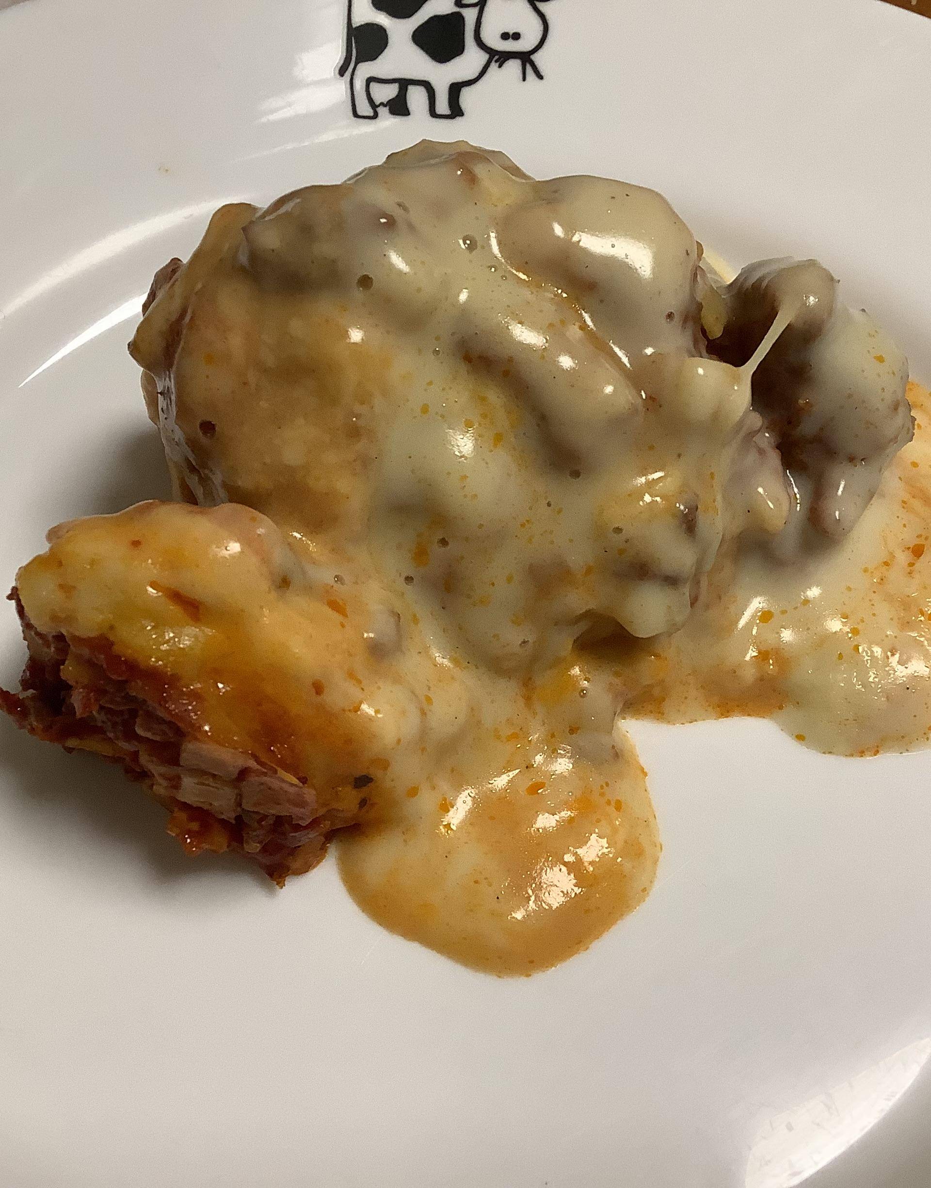Dans la cuve du Cookéo, faire le dressage. Pâte à lasagnes - viande + sauce tomate - béchamel et ainsi de suite jusqu’à épuisement des ingrédients.