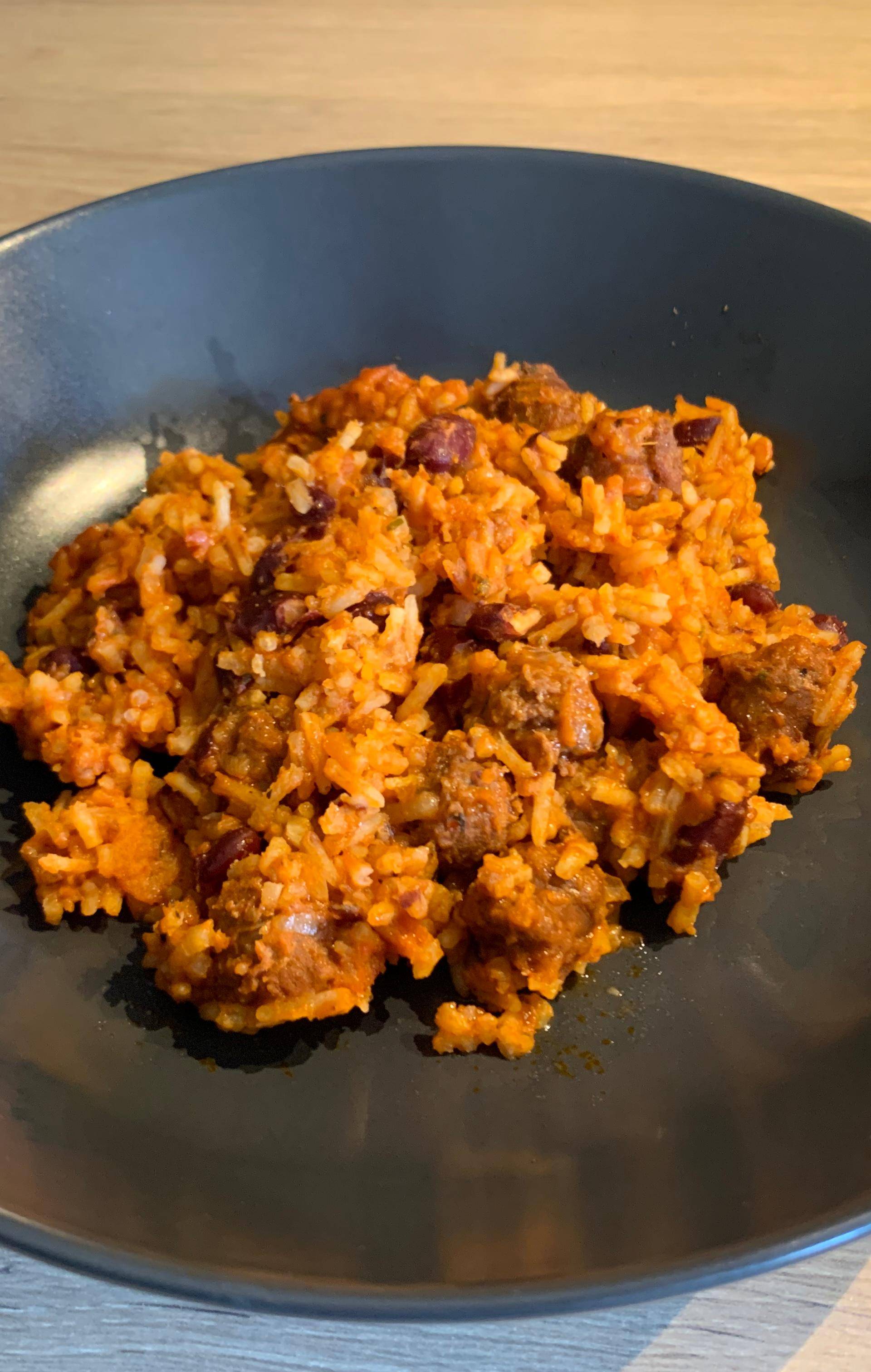 Mijoté de Louisiane aux haricots, riz et saucisses