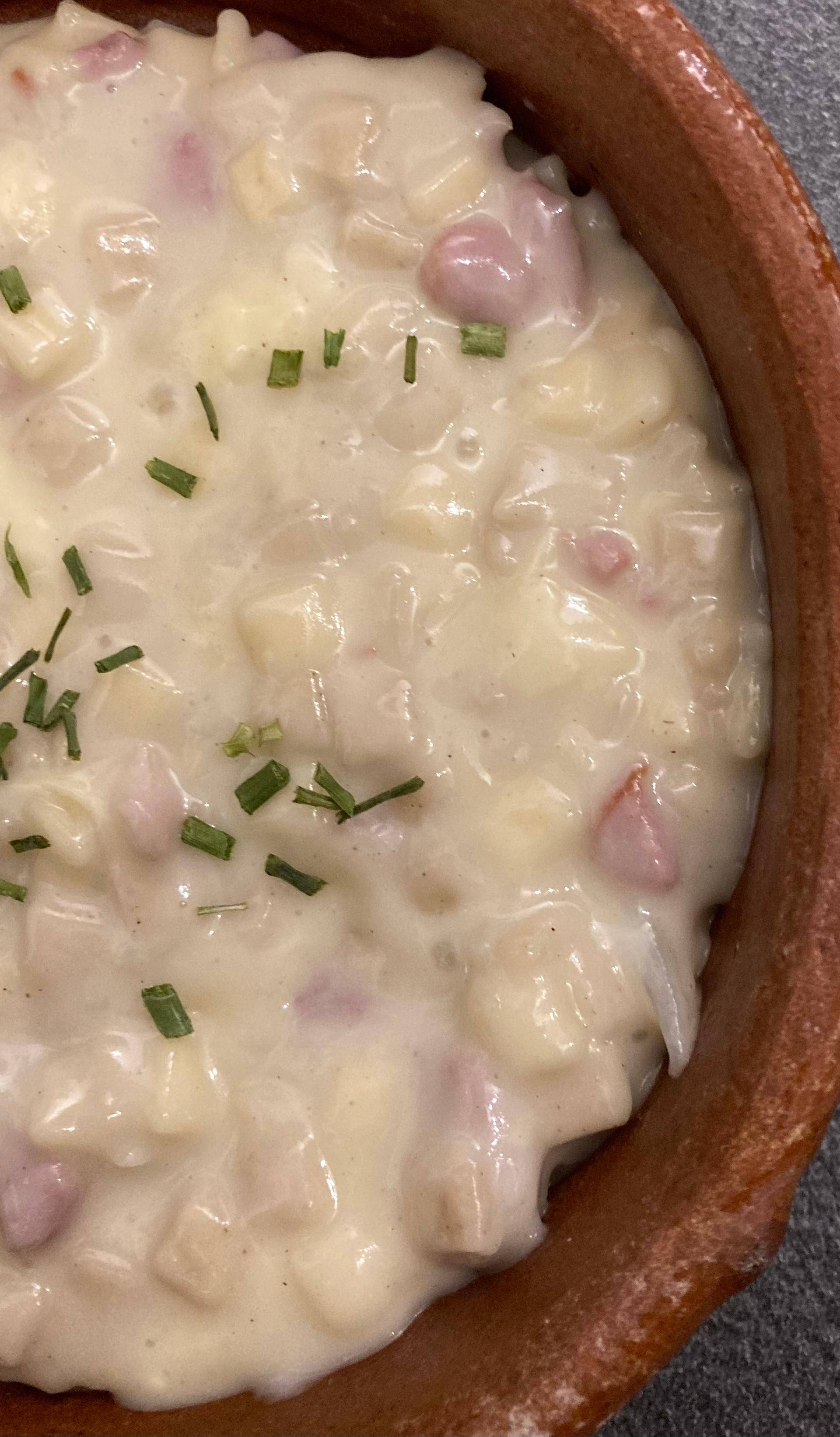 Découpez le reblochon (froid pour faciliter la découpe) en petits morceaux. Ajoutez le fromage dans le bol du Companion, dans la préparation brûlante et remuez rapidement à la spatule jusqu’à ce que le fromage soit bien fondu. Rectifiez l’assaisonnement (sel et poivre) et ajoutez quelque brins de persil