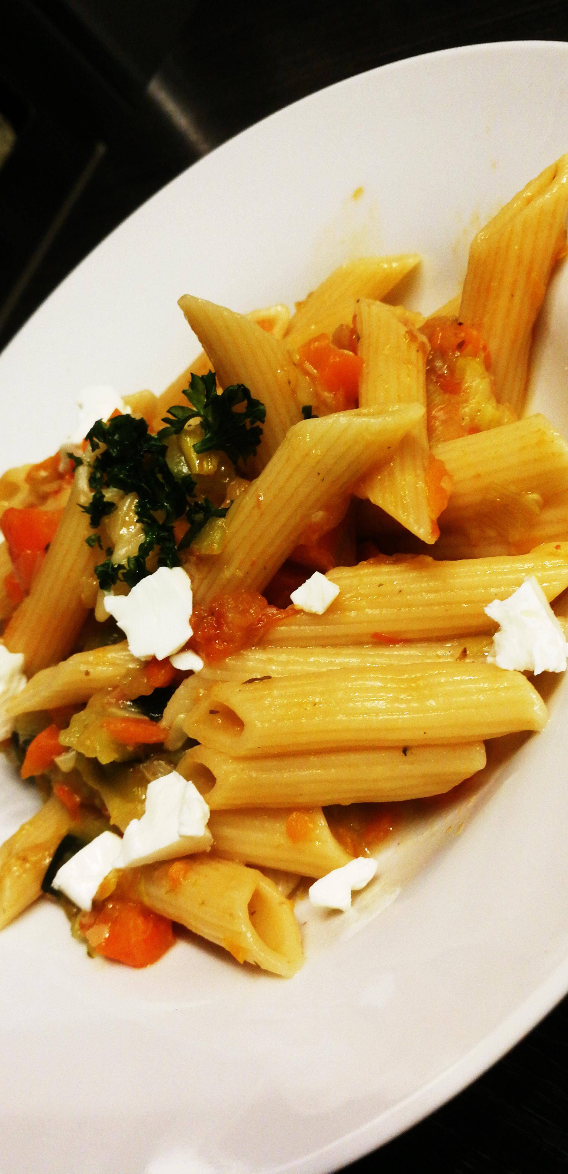Verser dans la cuve les pâtes avec les légumes et le bouillon ainsi obtenu. Bien mélanger.