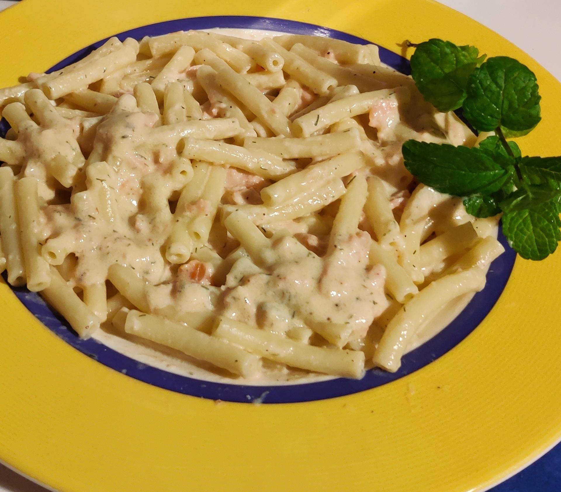 Parsemer de menthe ciselée et mélanger avec les pâtes.