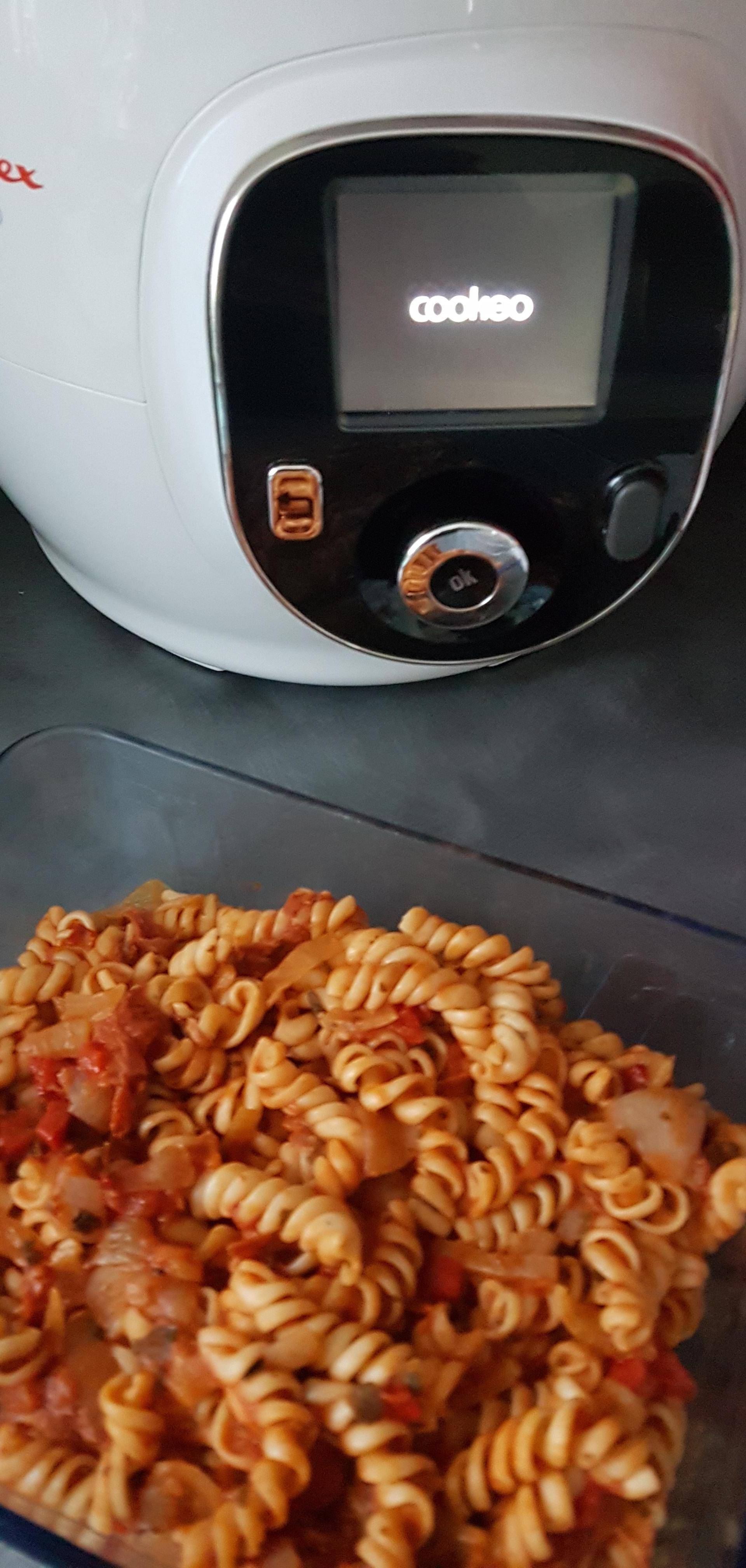Ajouter ensuite le reste des ingrédients (pulpe de tomate, pâtes, eau, basilic, sel et poivre. Mettre en cuisson sous pression durant 4 min. Voilà c'est prêt !!!