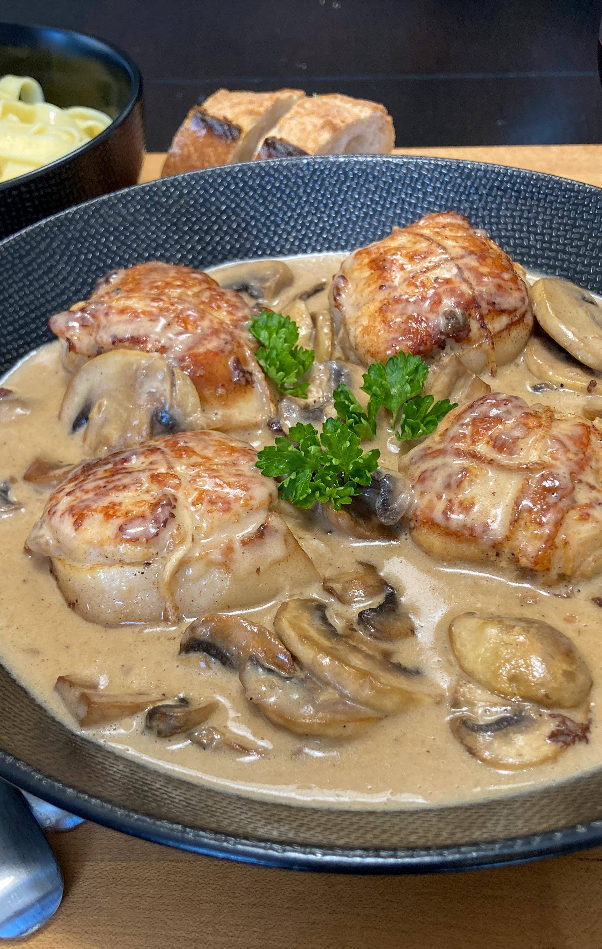 Une fois la cuisine terminée ajouter la crème fraîche, si la sauce est trop liquide, la délayer avec une cuillère à soupe de Maïzena.