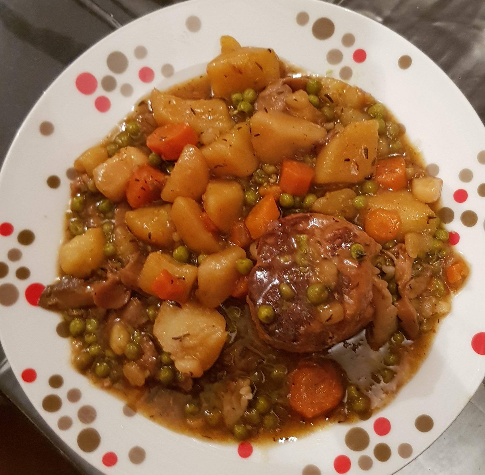 Faire revenir les lardons, ajoutez oignons, poireaux et carottes. Ensuite, les paupiettes, le bouillon de volaille, l'eau, saler et poivrer.