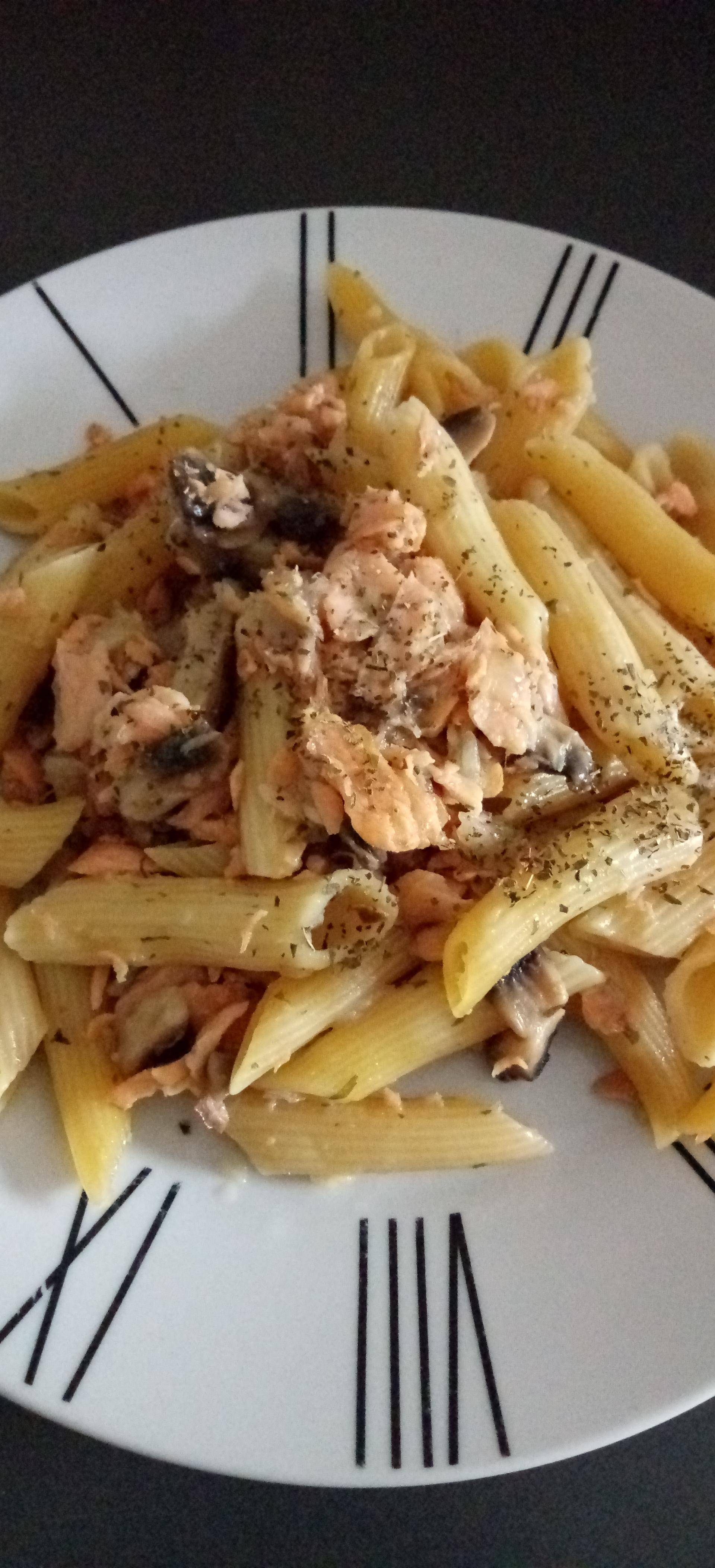 Preparer les ingredient emincer l oignon les champignons et le saumon puis les faire doré pendant 3minute avec lhuile