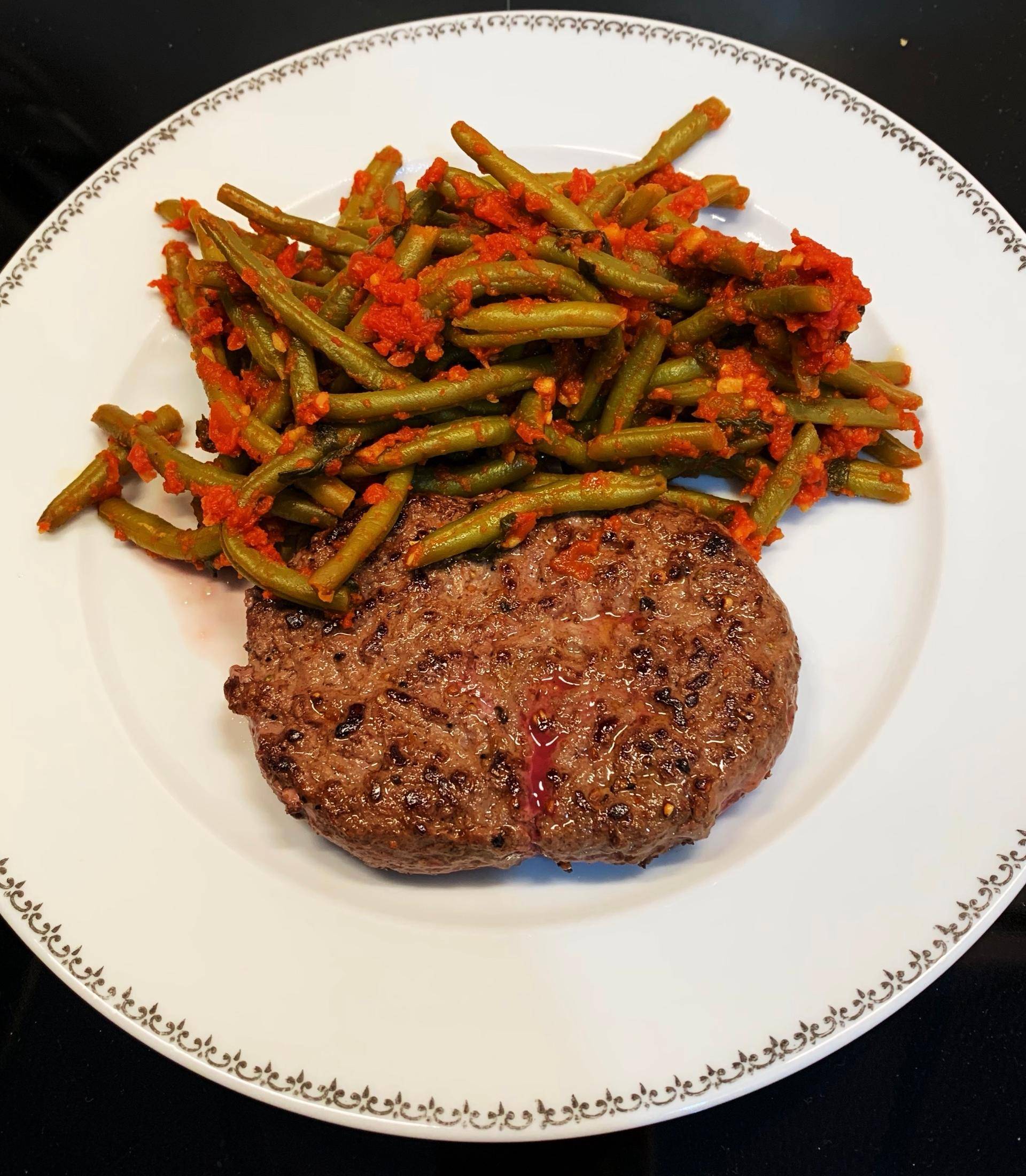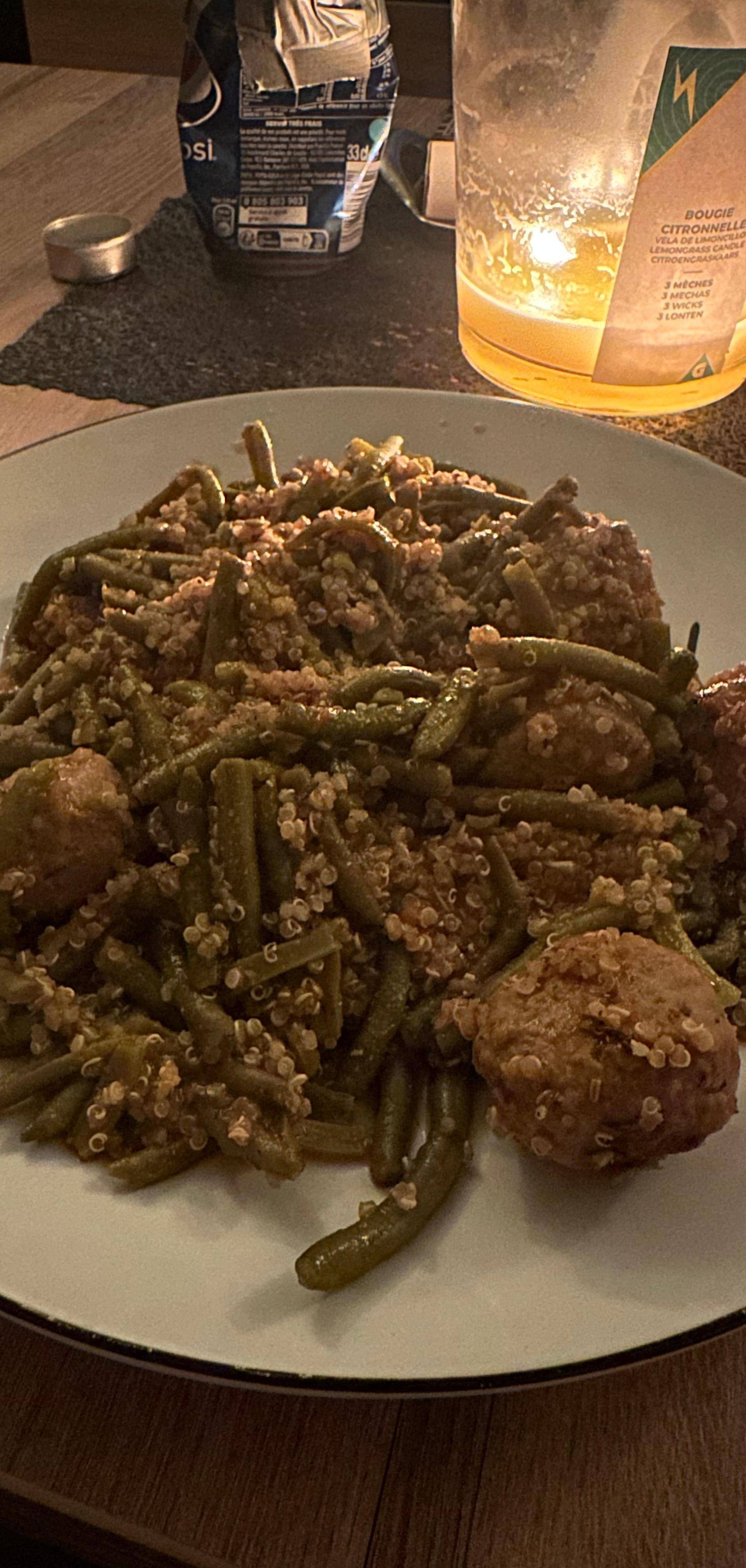 Puis ajoutez les épices , mélangez et ajoutez les haricots verts surgelés. Laissez bien revenir le tout 3 bonnes minutes et laissez sur maintient au chaud le temps de votre accompagnement.