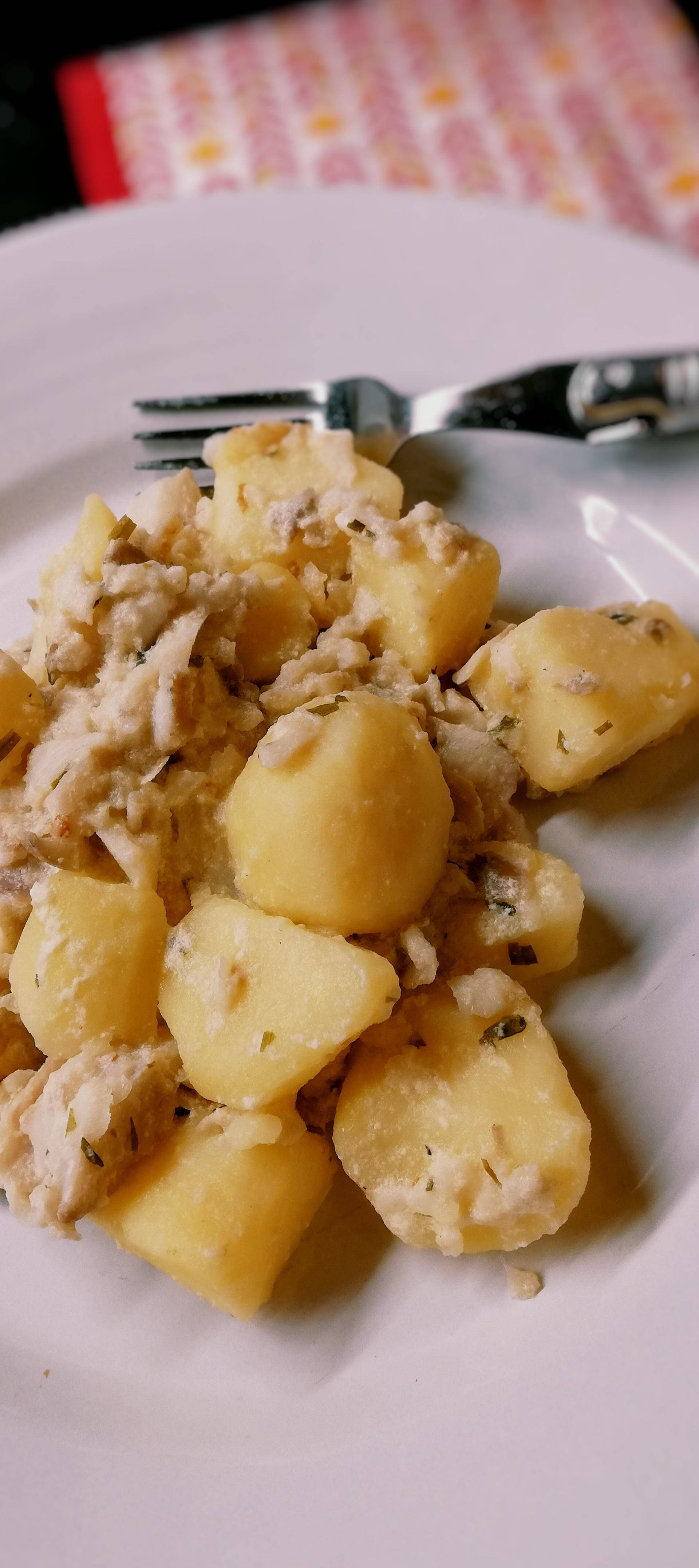 Couper les pommes de terre et le poisson en gros morceaux