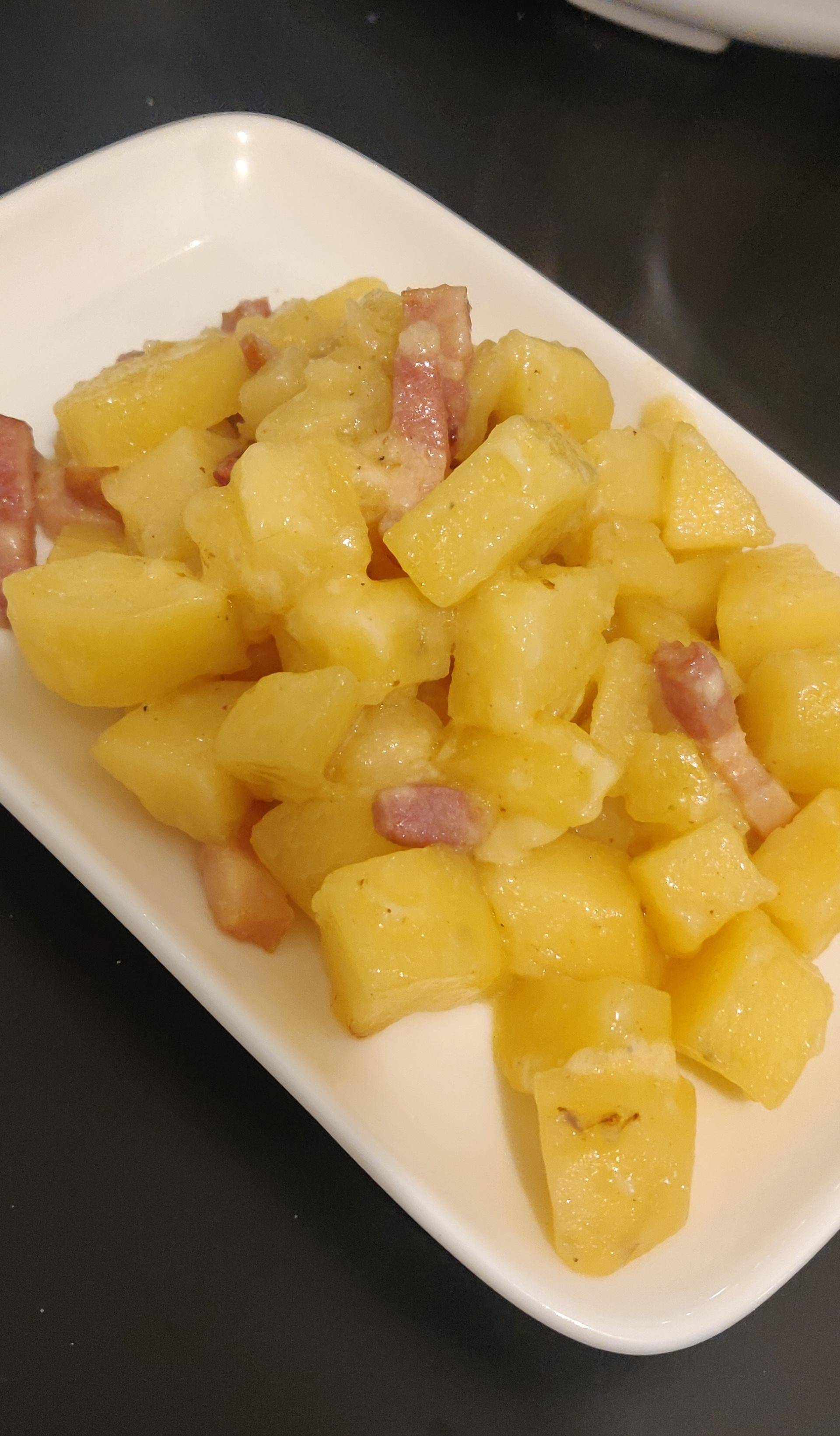 Ajouter les pommes de terre coupées en cubes et faites dorer encore 5 minutes en remuant de temps en temps