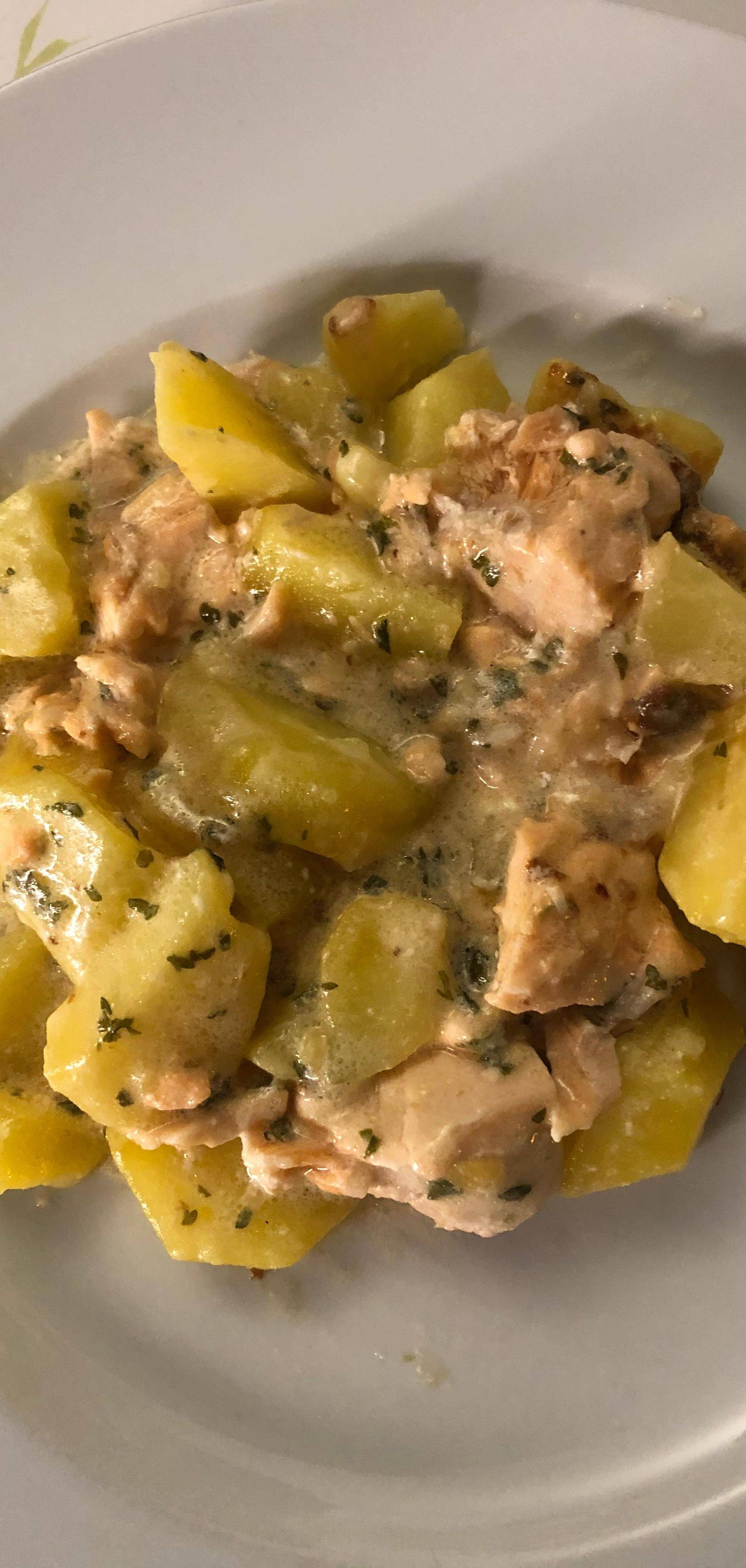 Éplucher et couper les pommes de terre en 4 Émincer l'oignon et l'échalote