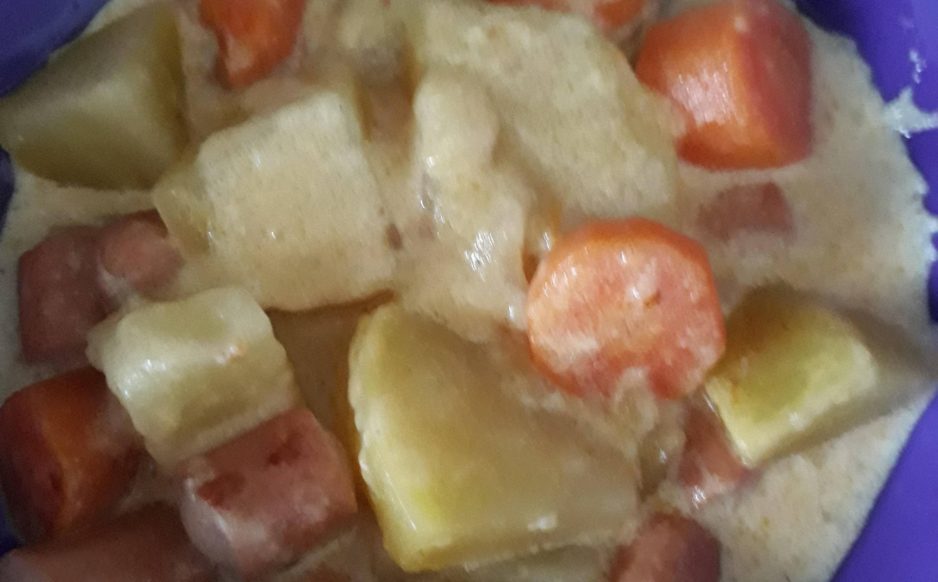 Pommes de terre carottes knackis sauce cheddar - Recette Cookeo | Moulinex