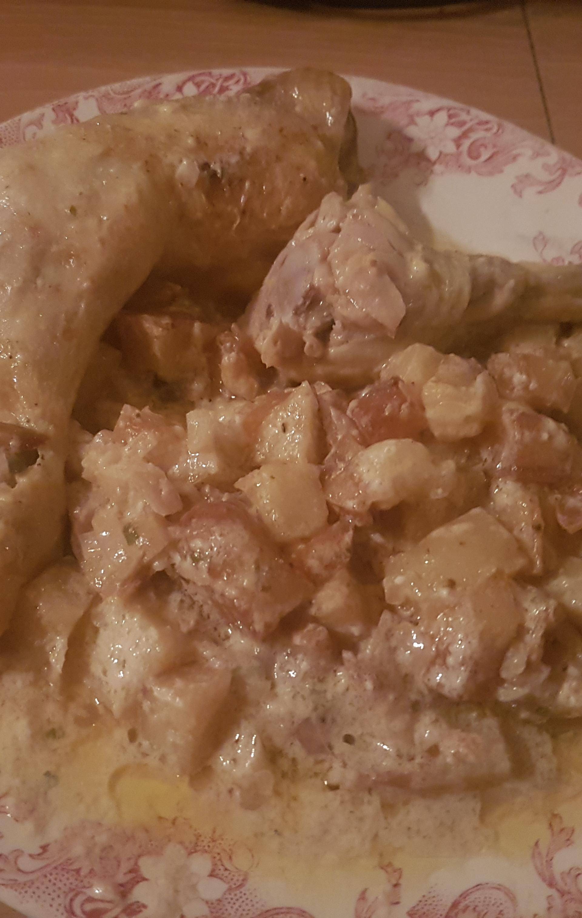 Ajouter la crème, l'eau et le fond de volaille dilué dans l'eau . Saler et poivrer a votre convenance. Bien melanger .