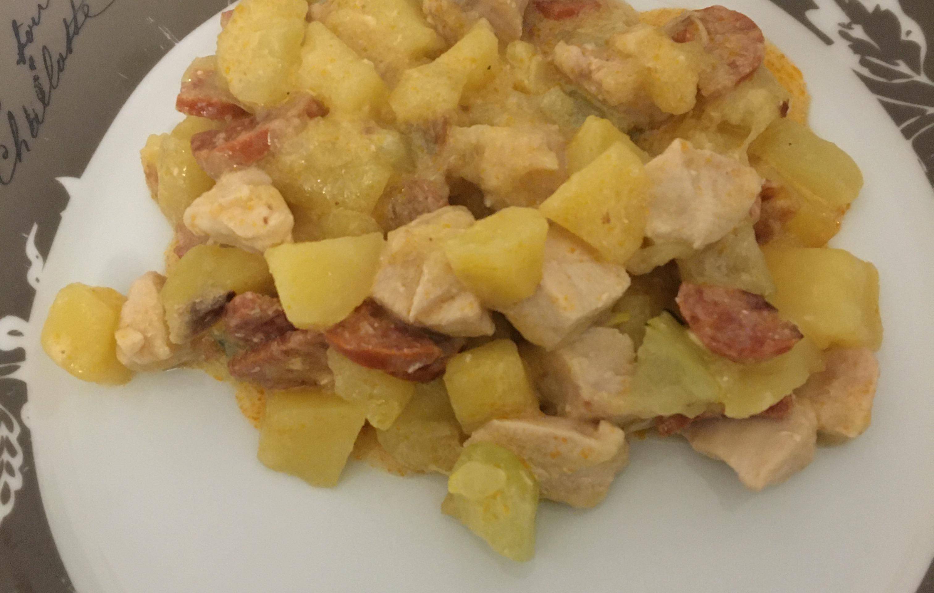 Pommes de terres fondantes, courgettes poulet et chorizo