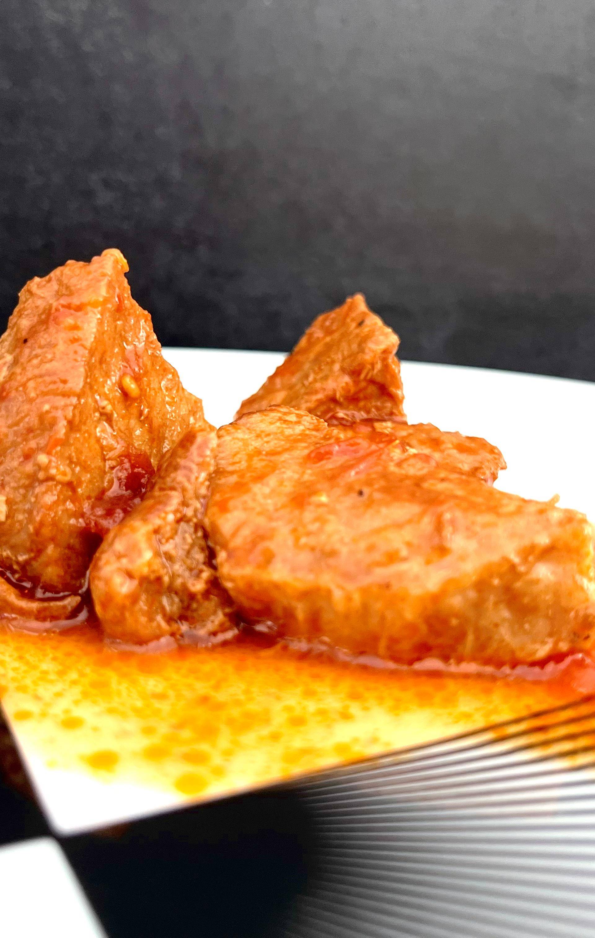 Mettre le mélangeur, ajouter la viande et l’huile d’olive (ne pas mettre le bouchon pour cette étape)