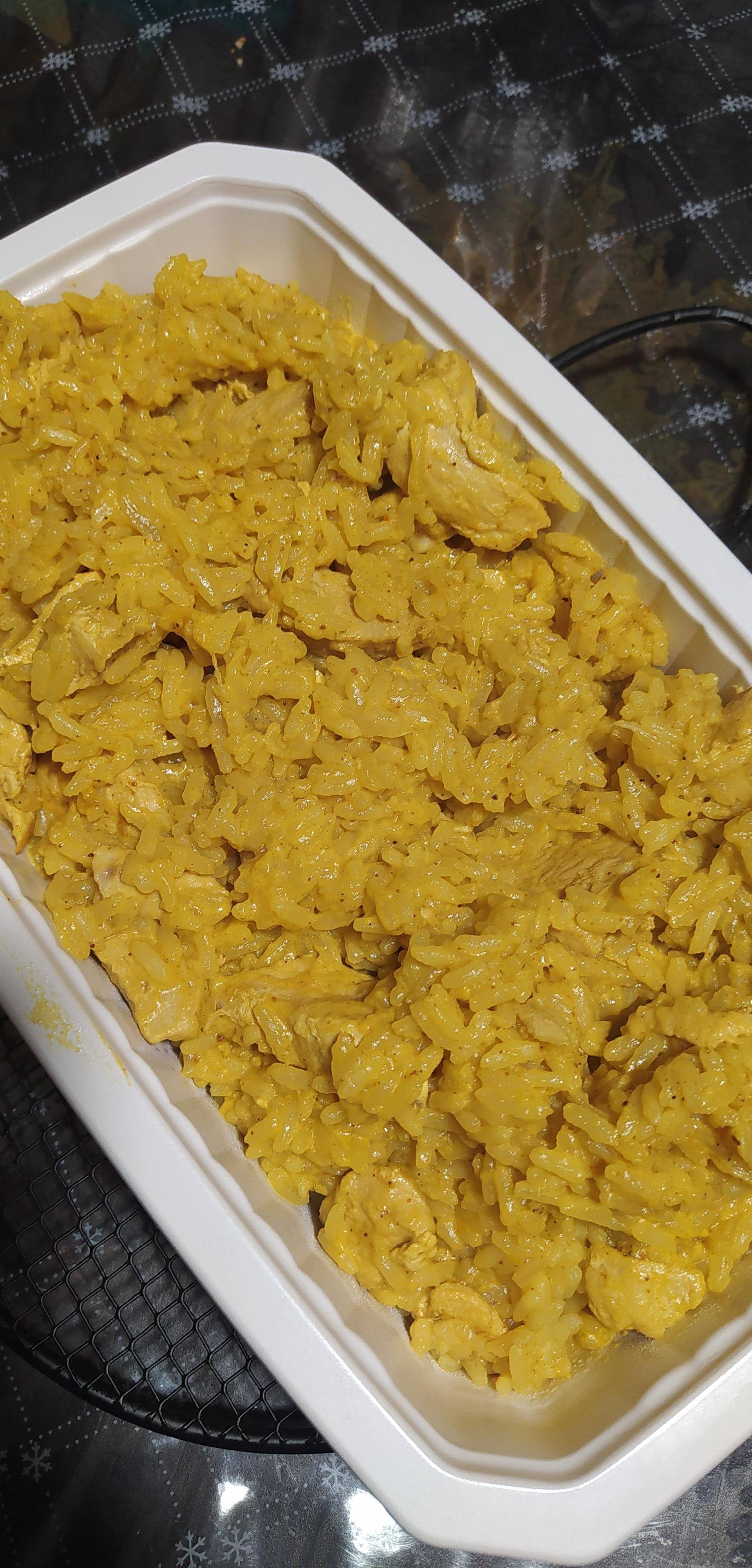 Couper les blancs de poulet en dès Emincer les oignons Hacher les gousses d'ail Mettre le tout dans la cuve en mode "dorer" pendant 10mn, remuer de temps en temps et ajouter le curry suivant vos goûts lorsque la viande commence à cuire. Saler poivrer Melanger