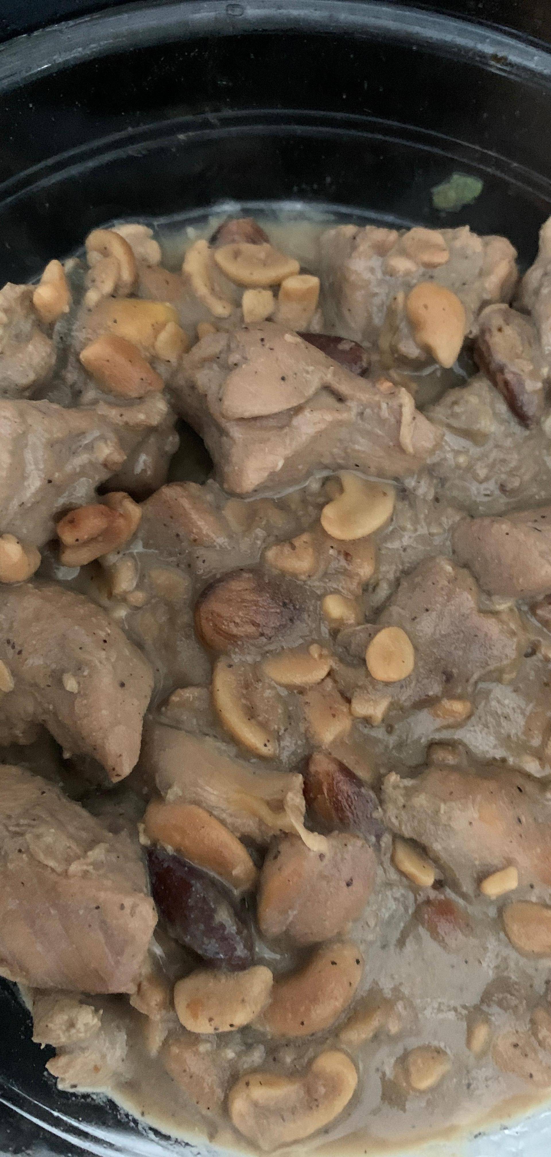 Ajoutez le sel, le poivre, la sauce soja, le miel, les amendes et les noix de cajou. Démarrez le Programme Mijoté P2