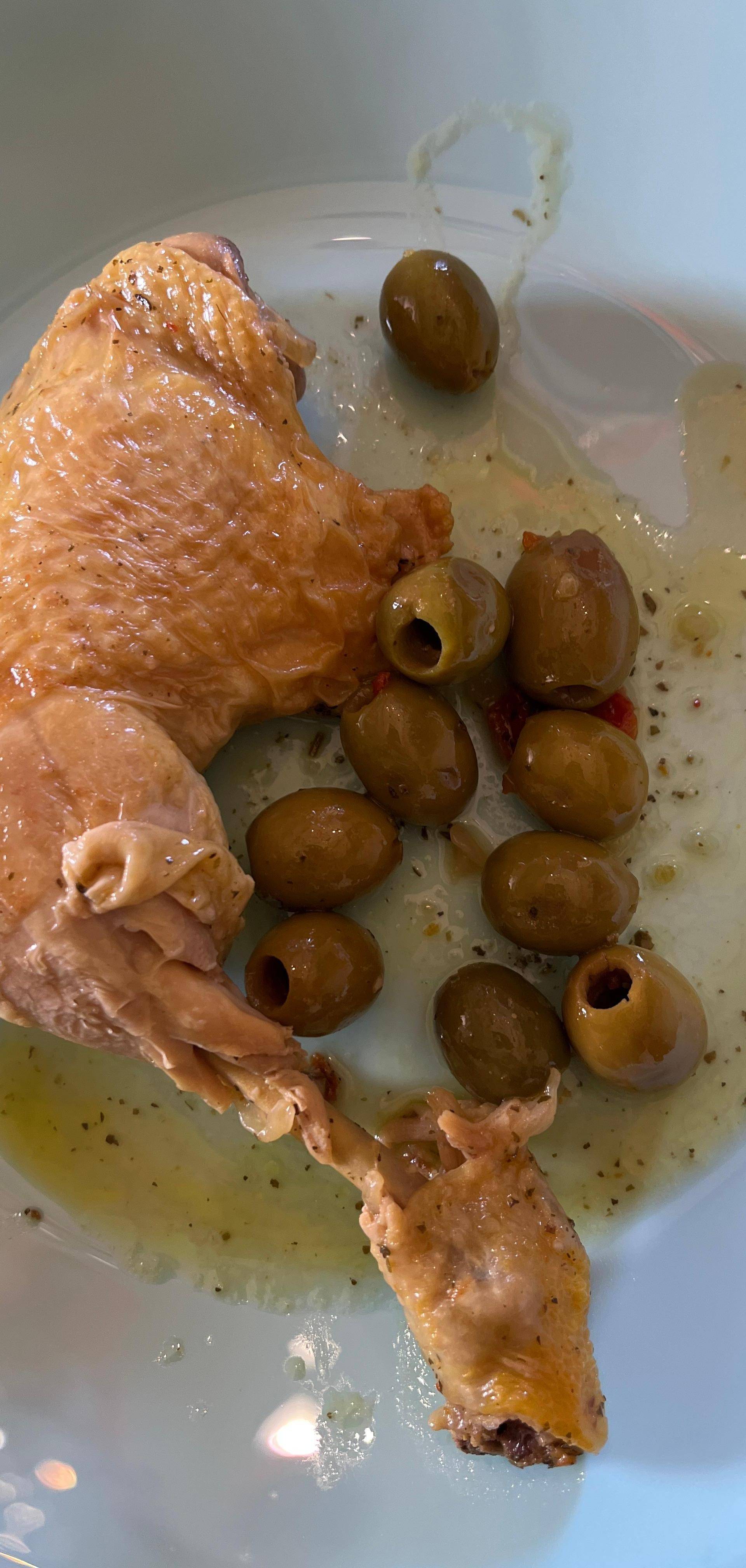Ajouter le poulet, Le faire dorer. Rajouter 100 ml d’eau par personne, le bouillon, les olives, le jus de citron. Lancer la cuisson sous pression pendant 20 minutes.