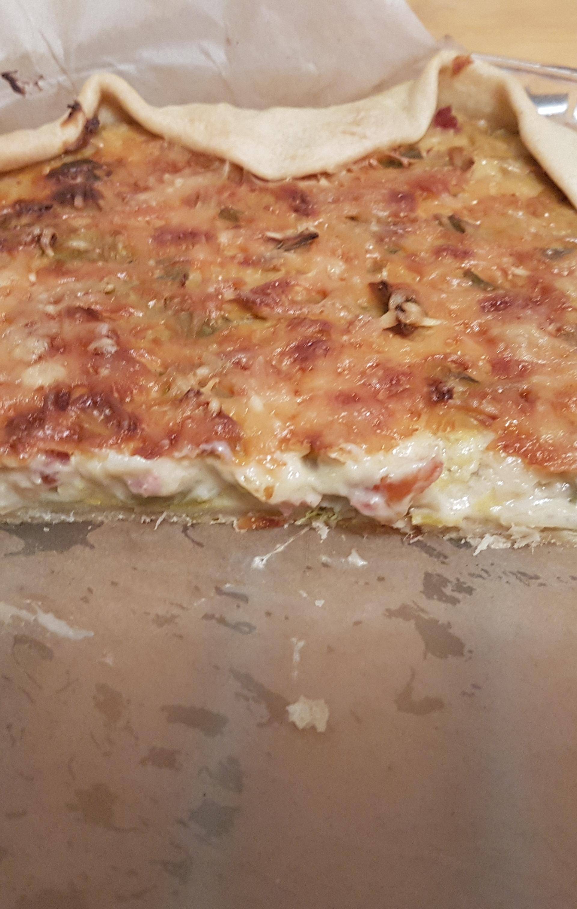 Etaler la pâte dans un plat à tarte. Mettre les poireaux et lardons dans le bol. Start.