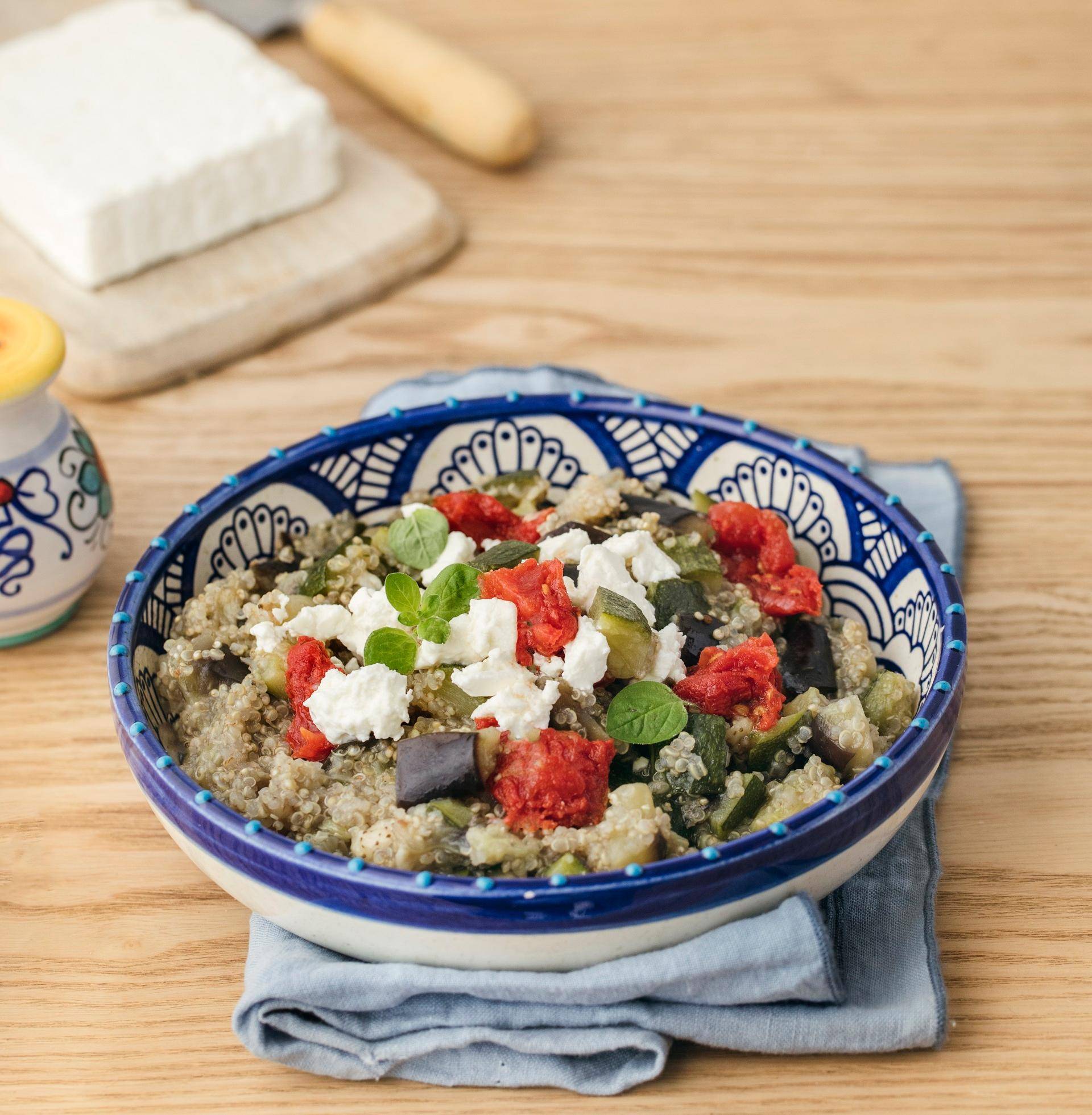 Placer dans la cuve les courgettes, l’aubergine avec le quinoa et 2 verres d'eau Cuisson sous pression