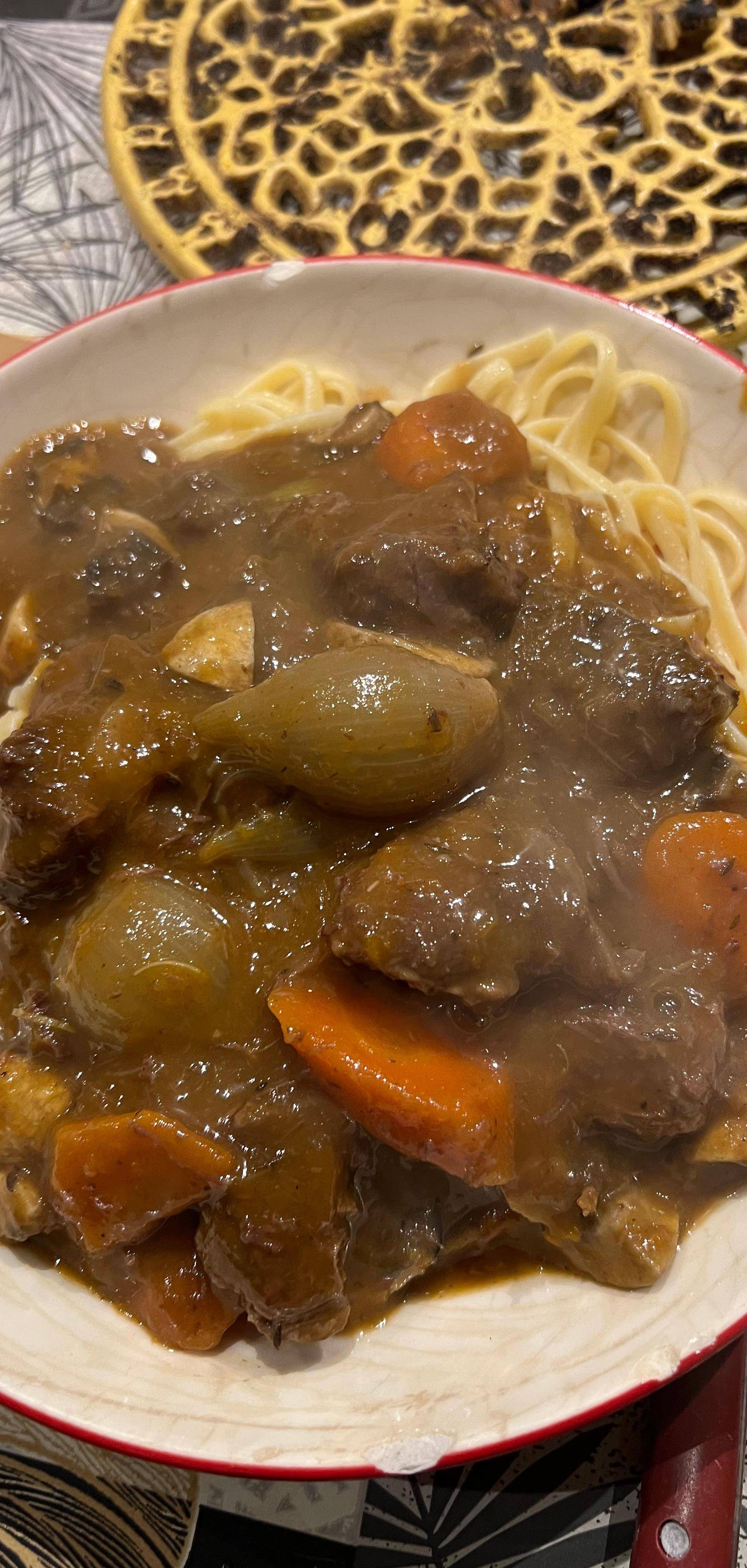 Remettre1h en mijoté p2 à 100 degrés. 25 min avant la fin, ajouter les champignons. Server chaud avec des pâtes ou des pommes vapeur