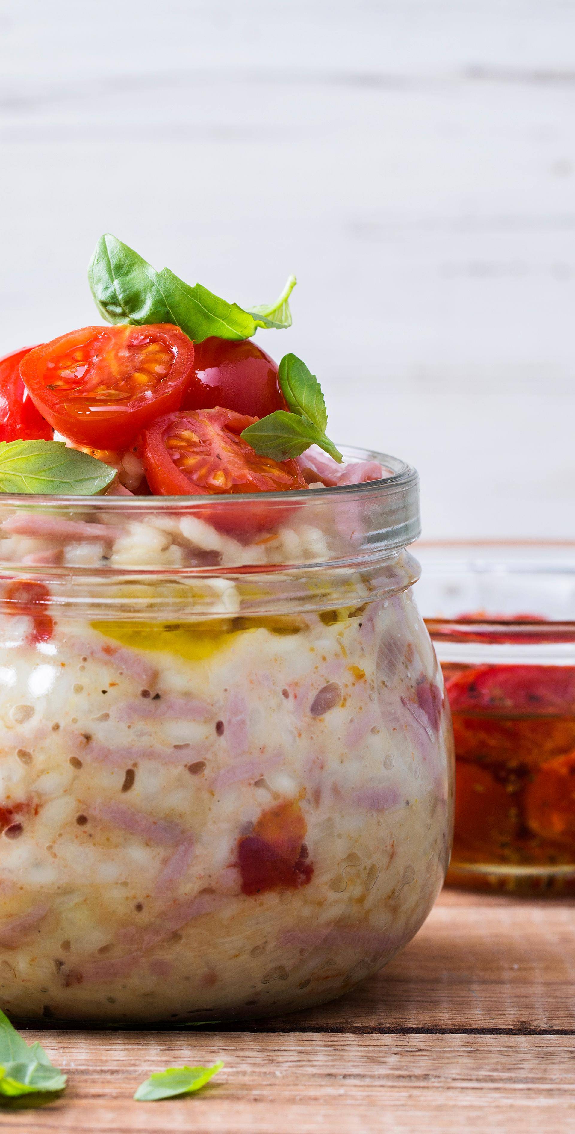 Risotto au Râpé de jambon fumé, tomates et basilic