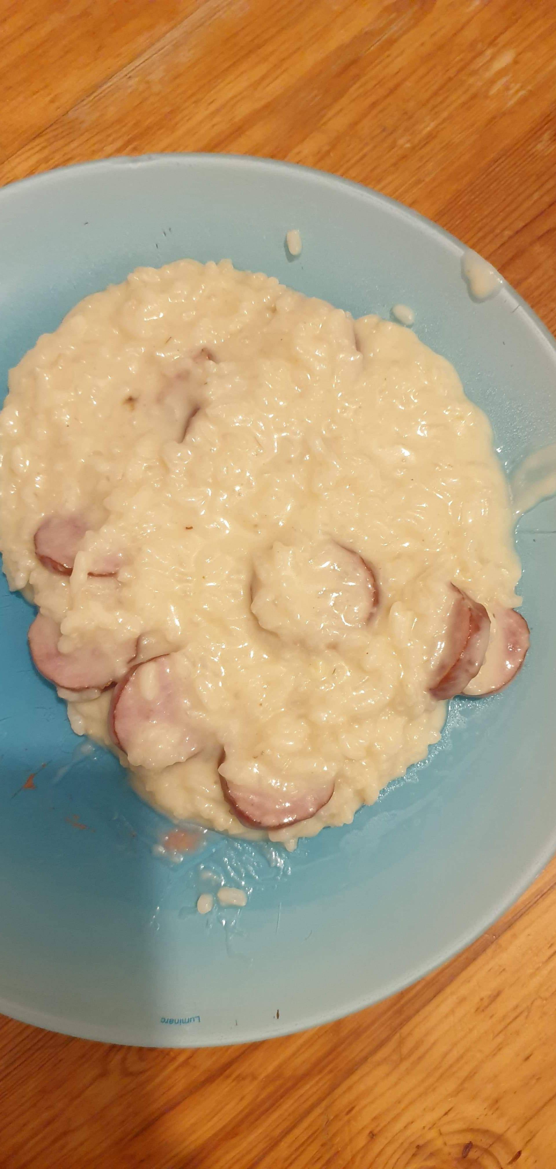Raclez les bords Ajoutez les saucisses préalablement coupées en tranches Et lancez slow cook en P1