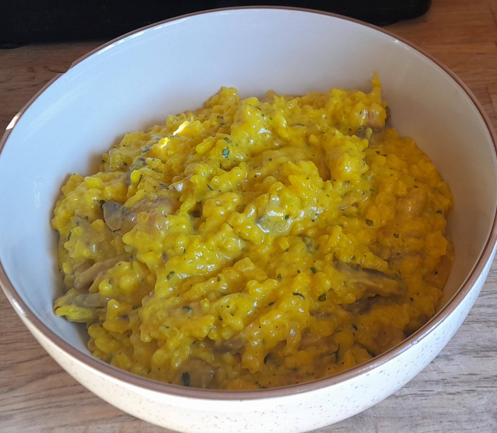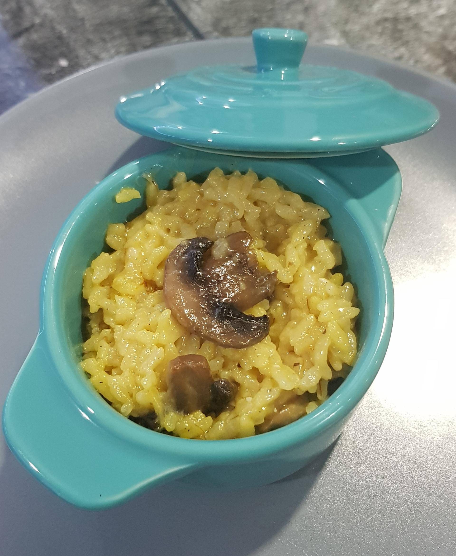 Dans le bol avec le mélangeur, verser l'huile d'olive, l'échalote émincée et les champignons
