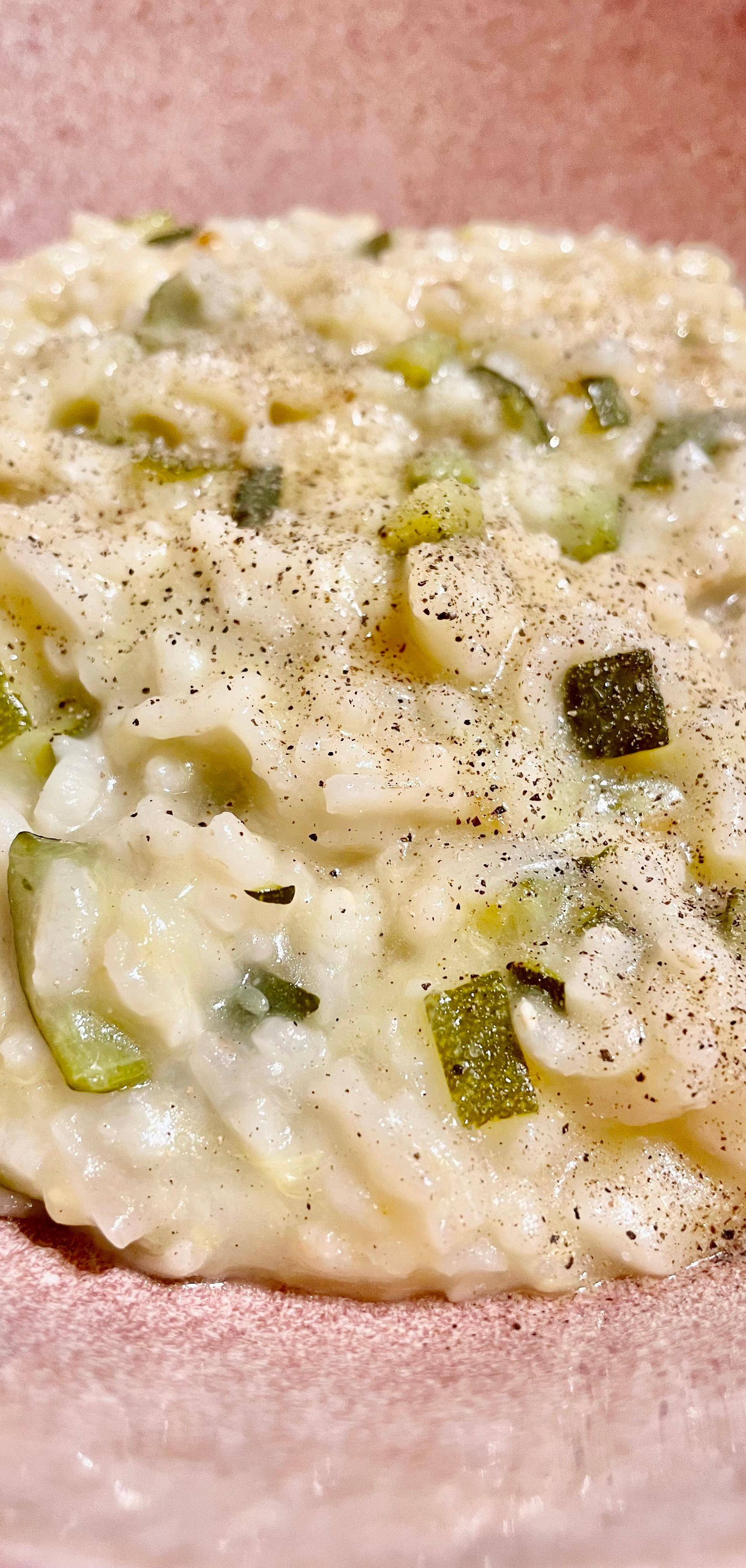 A la fin de la cuisson, ajoutez le parmesan, mélangez (1 CAS par personne). Servir le risotto, salez, poivrez, ajoutez un peu de zeste de citron sur chaque assiette si vous en avez pour apporter un peu de peps.
