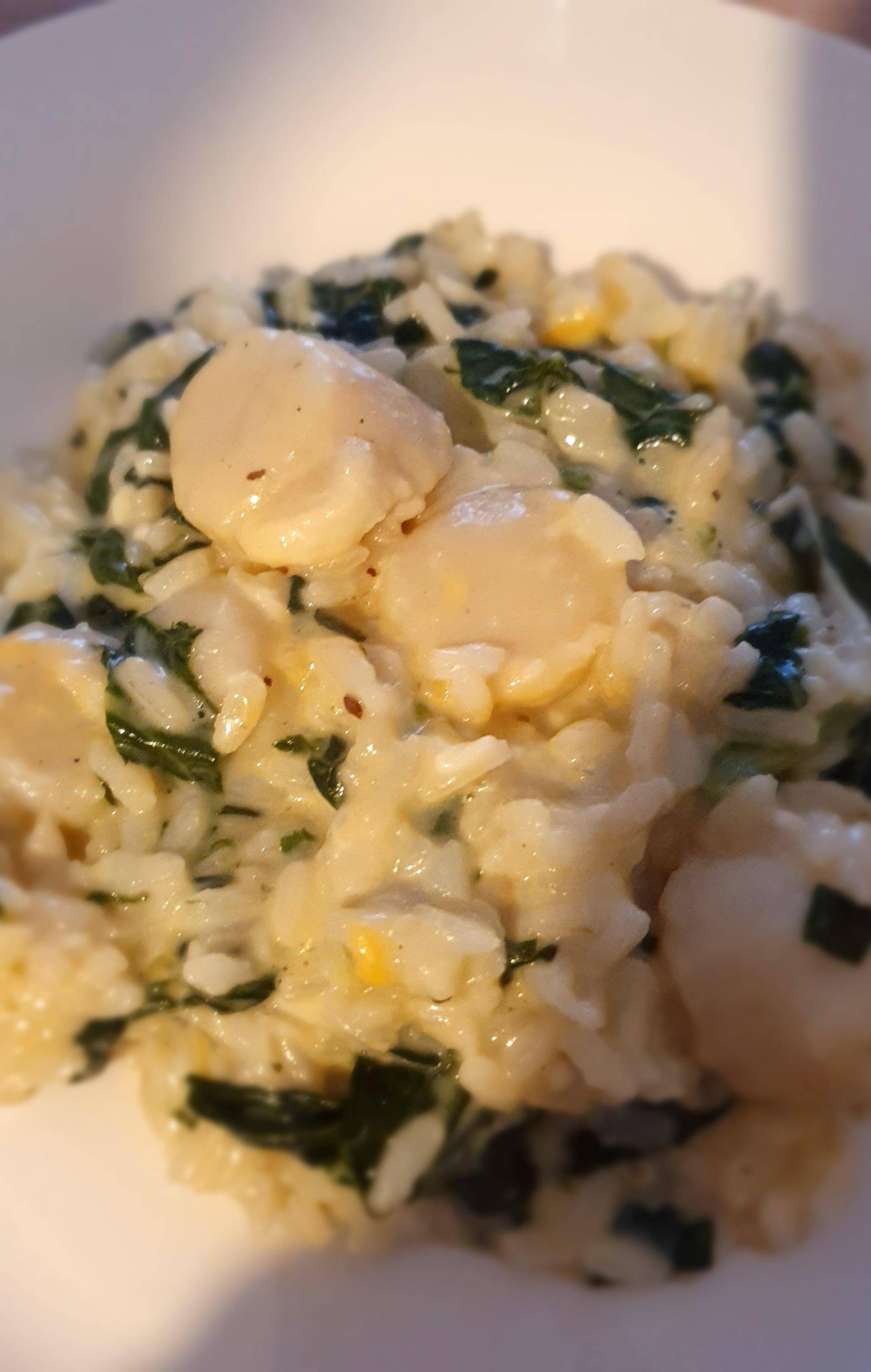 A la fin du temps de pression, ajouter les épinards en lanière, mélanger. Et ajouter les noix de St Jacques. Remettre en "Pression" pendant 3 minutes