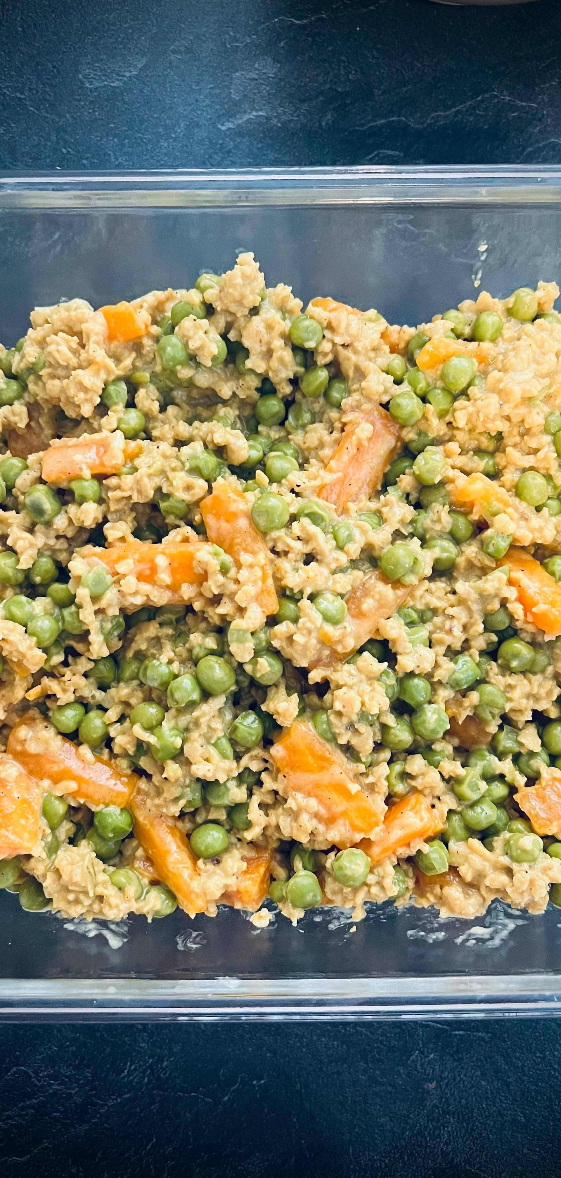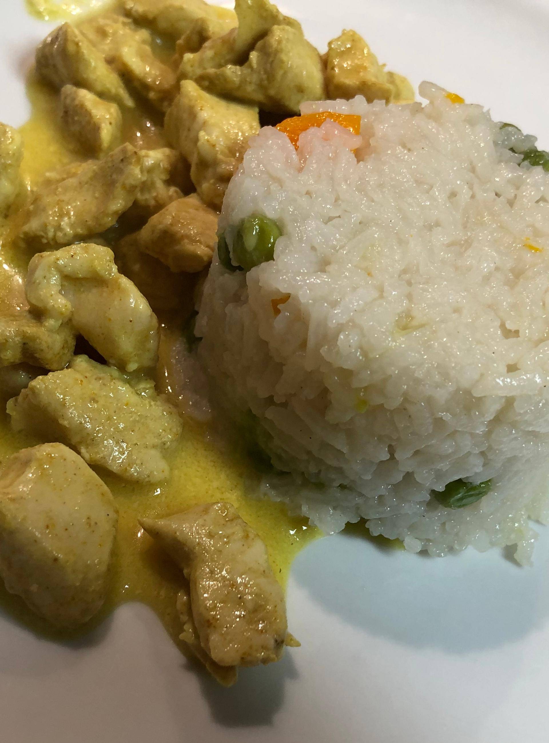Risotto petits pois carottes et poulet coco curry et curcuma