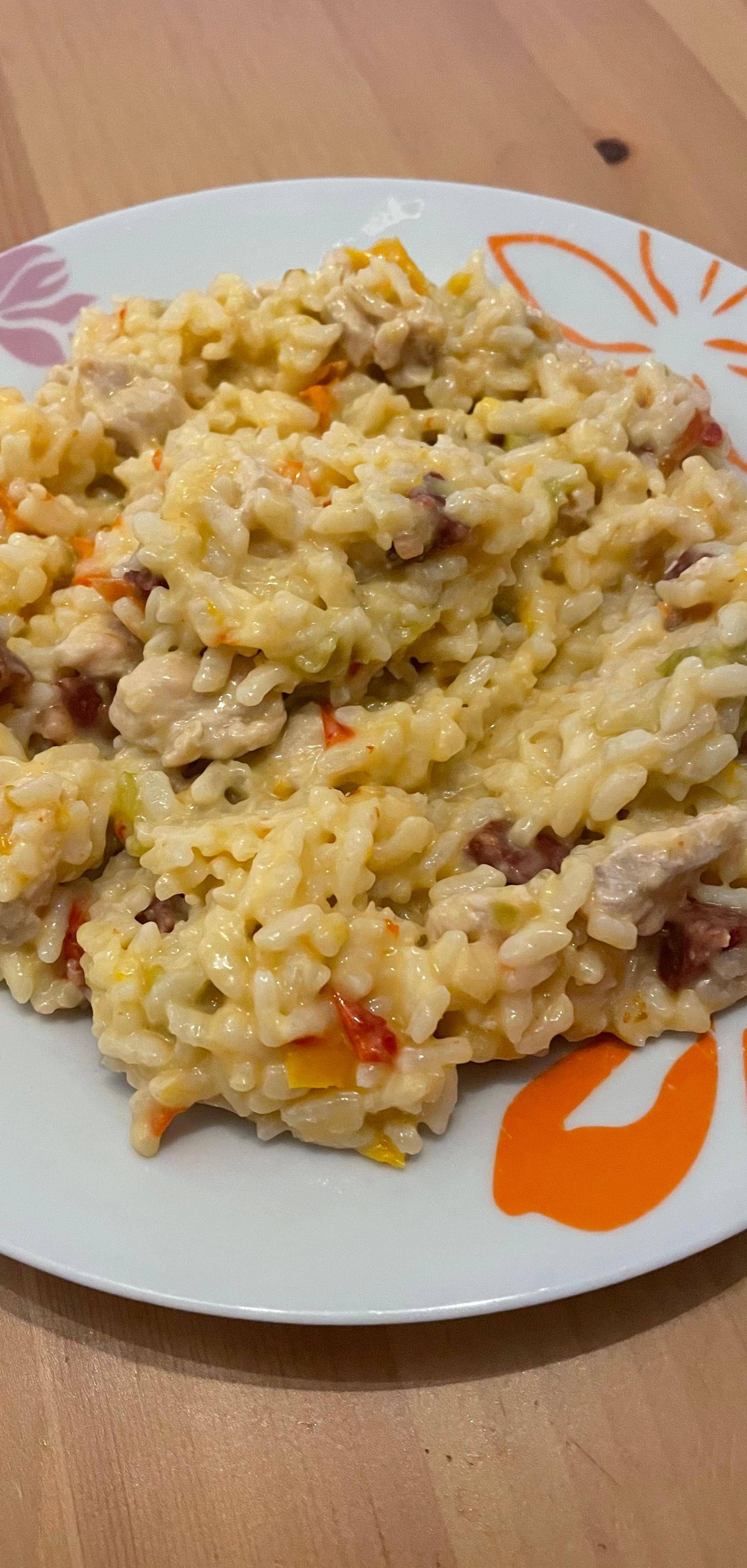 Mettre l'oignon, les poivrons, le chorizo et le poulet dans la cuve et faire dorer