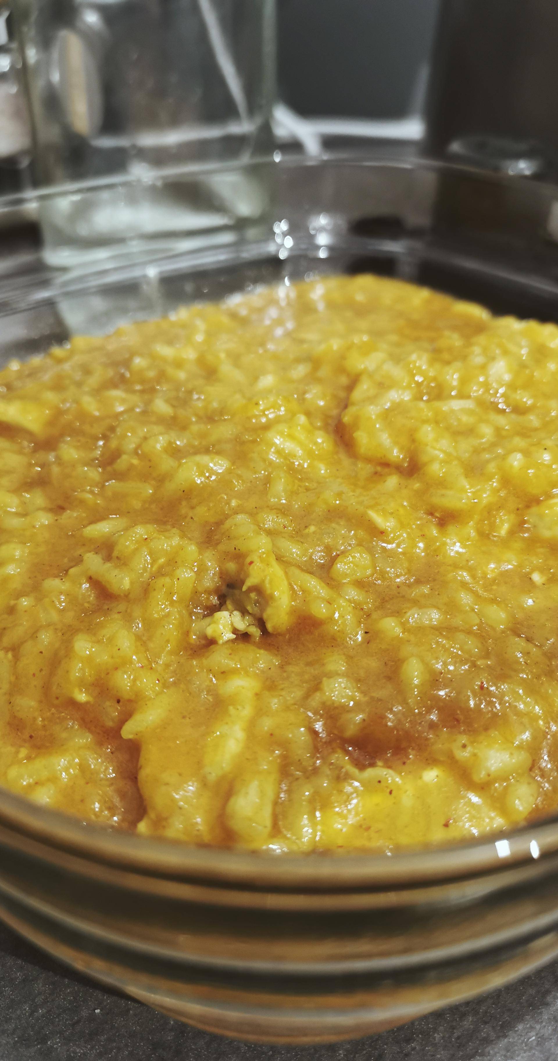 Ajouter le riz, les kubOr dilués dans l'eau, le vin blanc, le curry et le paprika dans la cuve. Fermer le couvercle avec le bouchon pour une première cuisson.