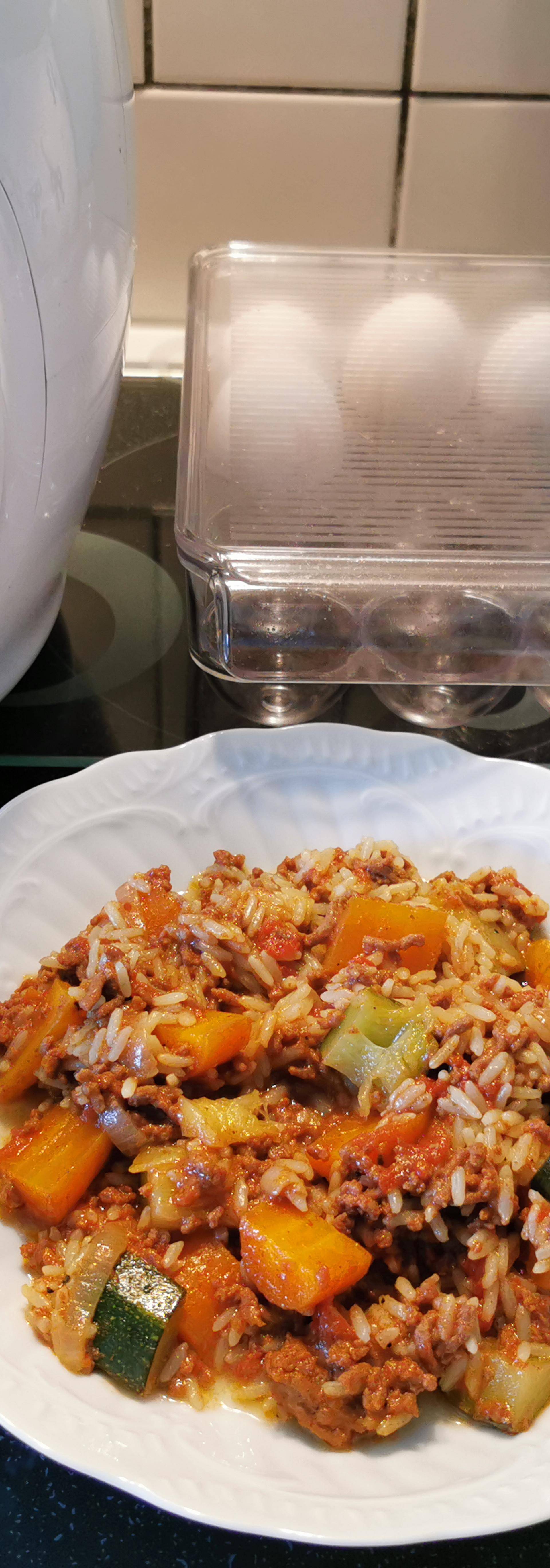 Couper les courgettes et carottes en petit cubes, ajouter les tomates concassées et assaisonner d'épices italiennes Ciseler l'oignon Assaisonner le haché de bœuf
