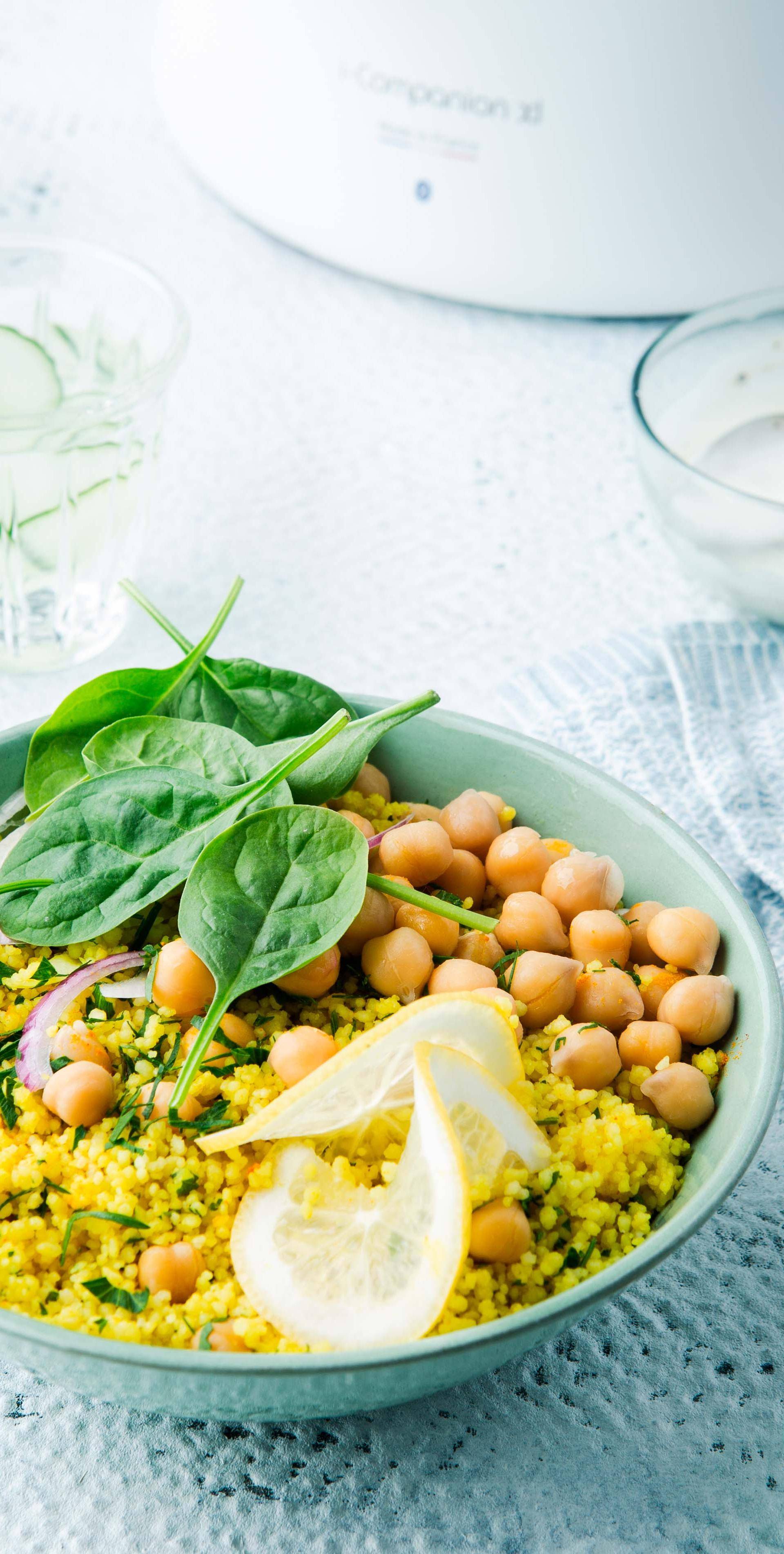 Riz pois chiches au curcuma et oeuf poché - Recette Cookeo | Moulinex