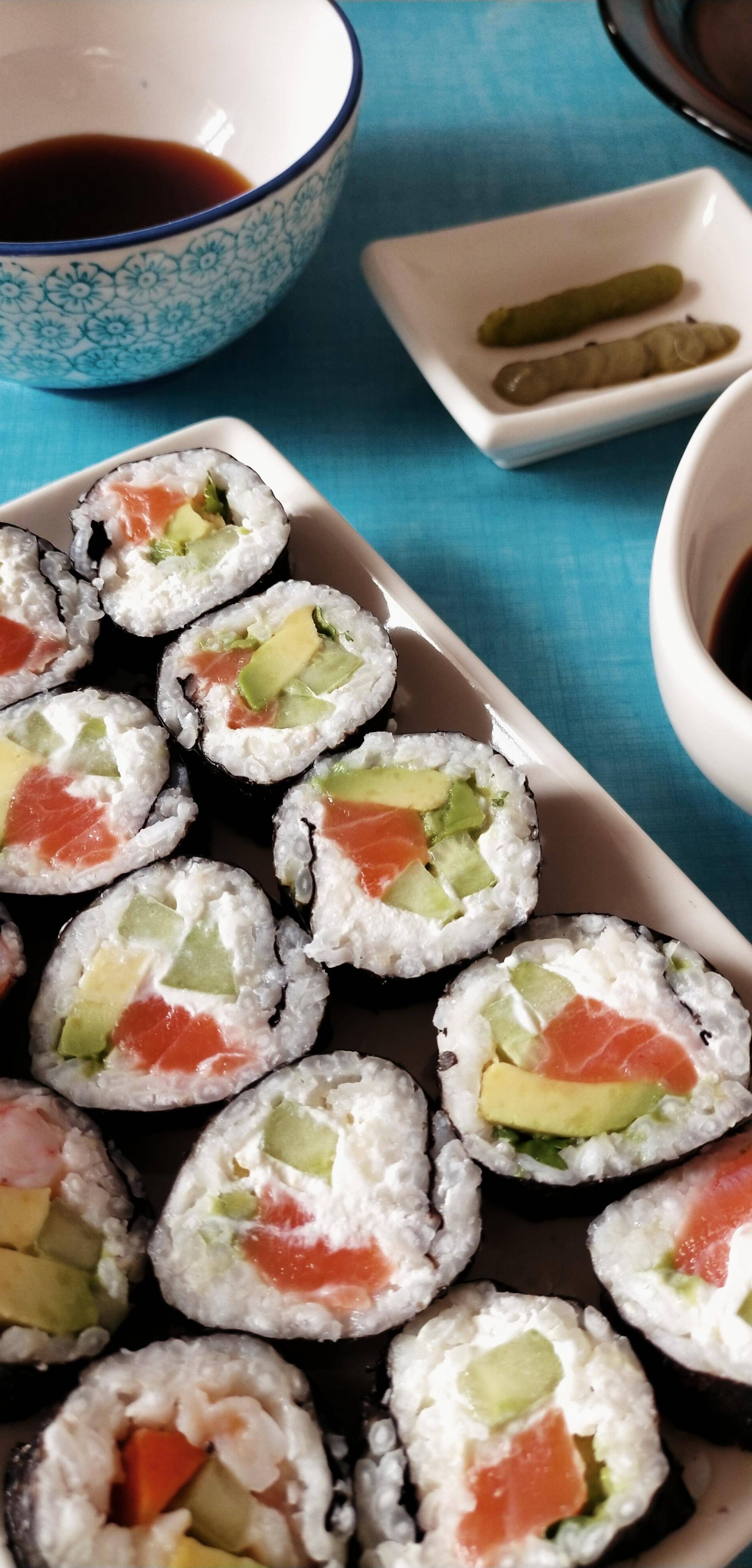 Agrément avec du saumon/avocat/ concombre/surimi à votre guise.