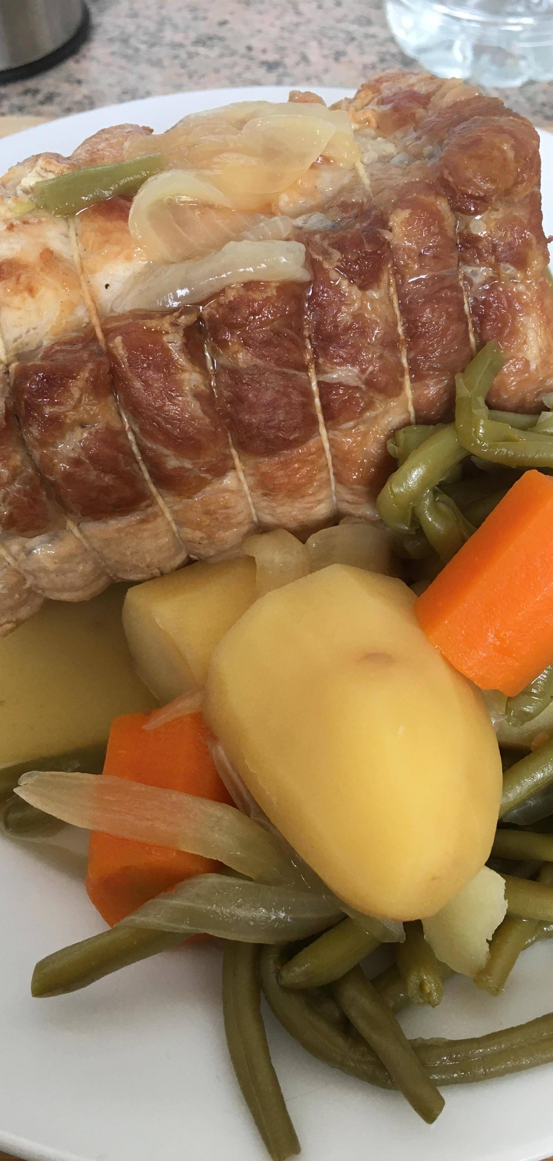 Couper grossièrement vos légumes (pommes de terre/carottes). Commencer par faire préchauffer le cookeo en mode dorer. Une fois le préchauffage terminé, mettre l’huile et faire griller le rôti de porc sur toutes les surfaces pendant 10 minutes.