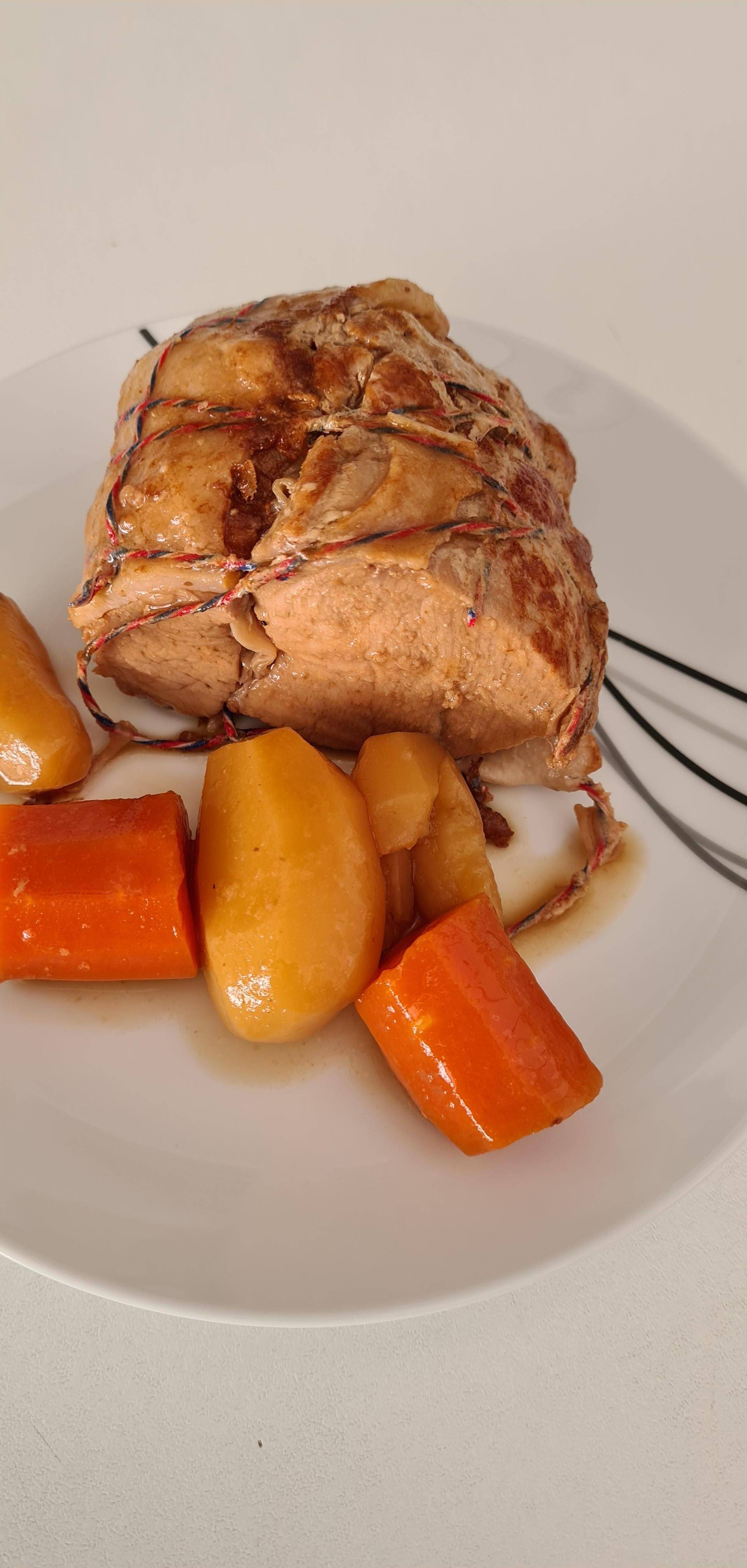 Ajouter le roti de veau sel et poivre et mettre sous pression 18 minutes . Servir tout de suite sinon le roti continue de cuire .