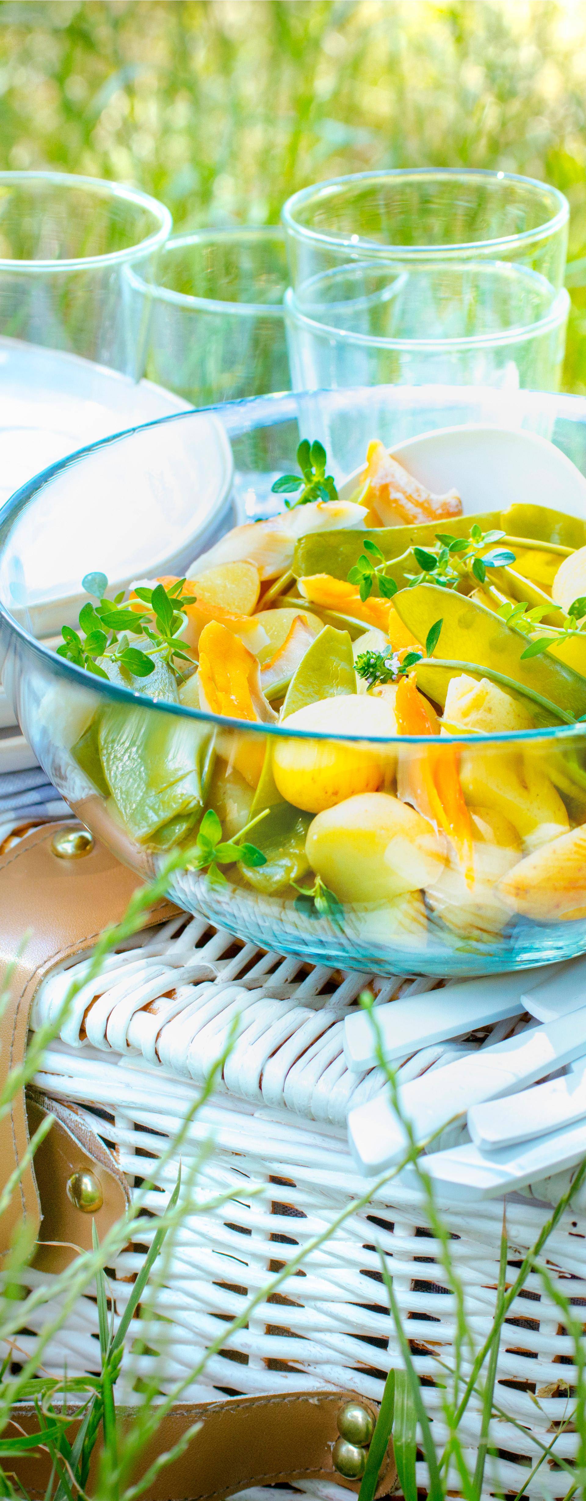 Positionnez le panier vapeur dans le bol du robot. Mettez-y les pommes de terre lavées et coupées en quatre. Verrouillez le couvercle et appuyez sur 'Start'. Lorsque l'alerte sonne, ajoutez les haricots plats lavés et posez le filet de haddock par-dessus.