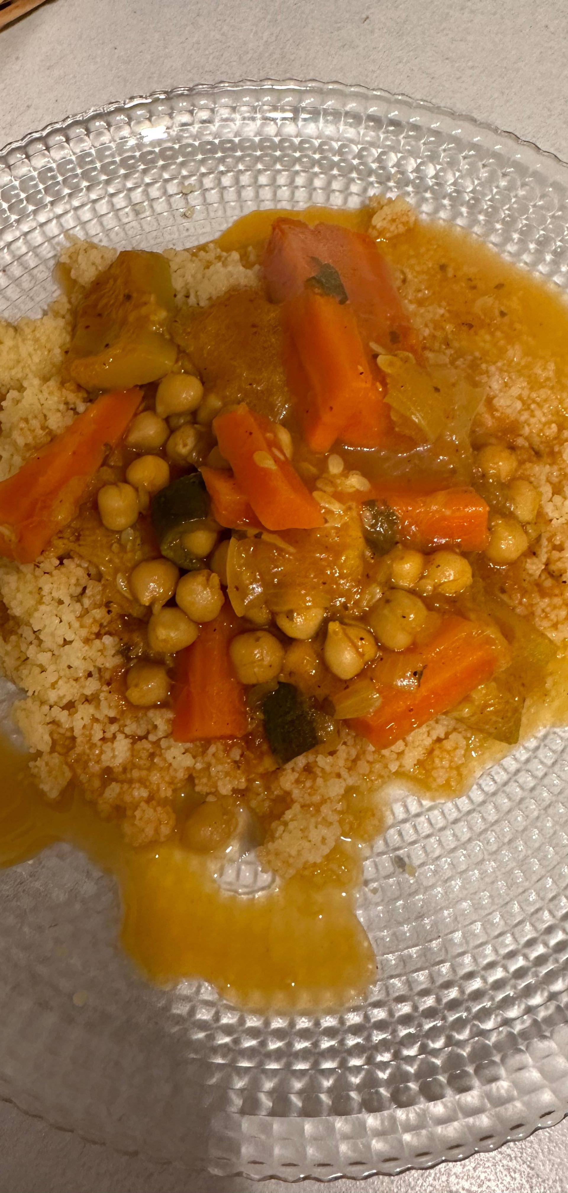 Ajouter toutes les épices sauf le bouillon avec un fond d’eau pour pas que ca accroche laisser mijoter , pendant la cuisson , éplucher 1 sur deux la peau des courgettes et les couper en gros morceaux (pas trop fines sinon ca tiendra pas en cuisson)