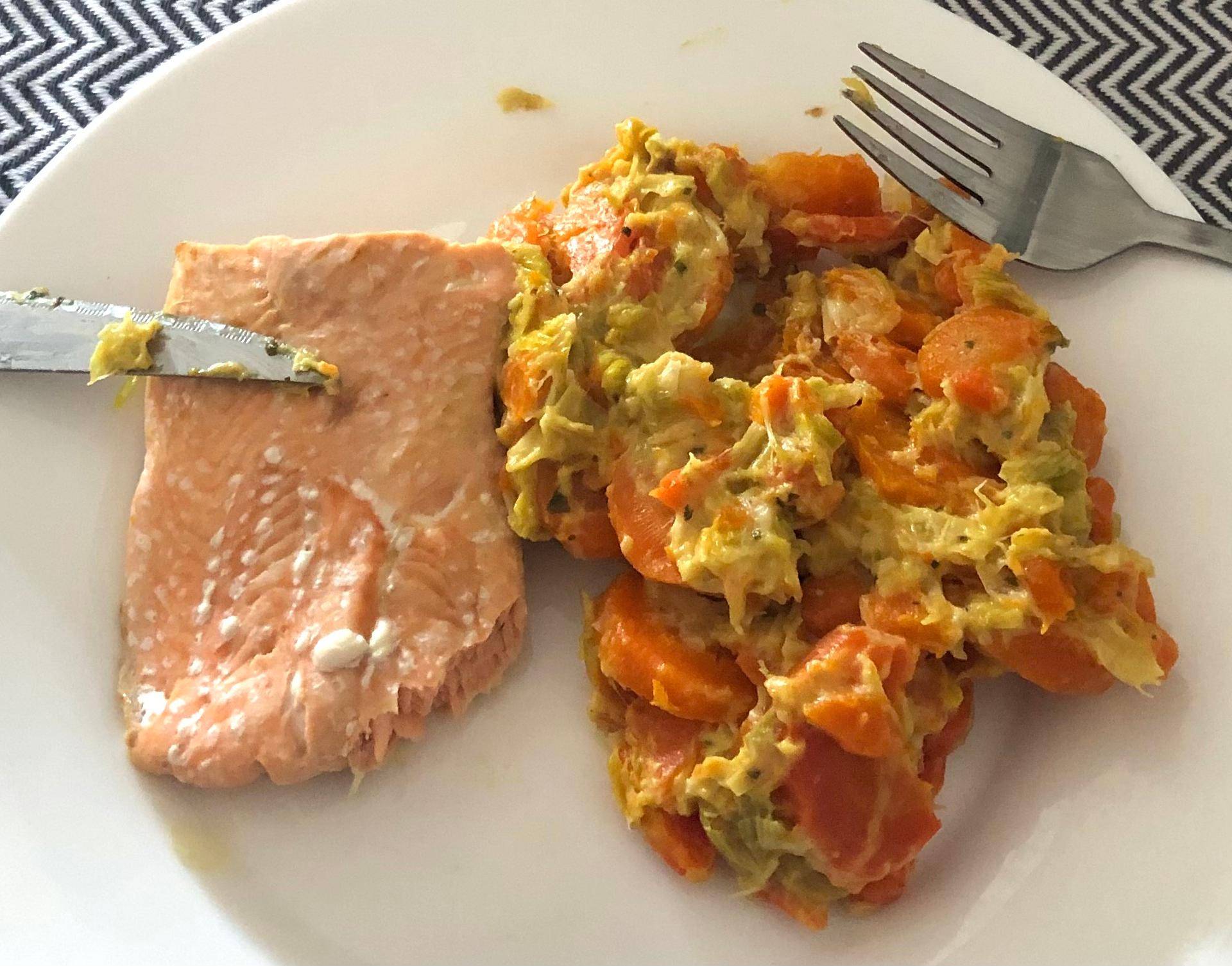 Saumon accompagné de poireaux carottes au boursin - Recette Cookeo | Moulinex