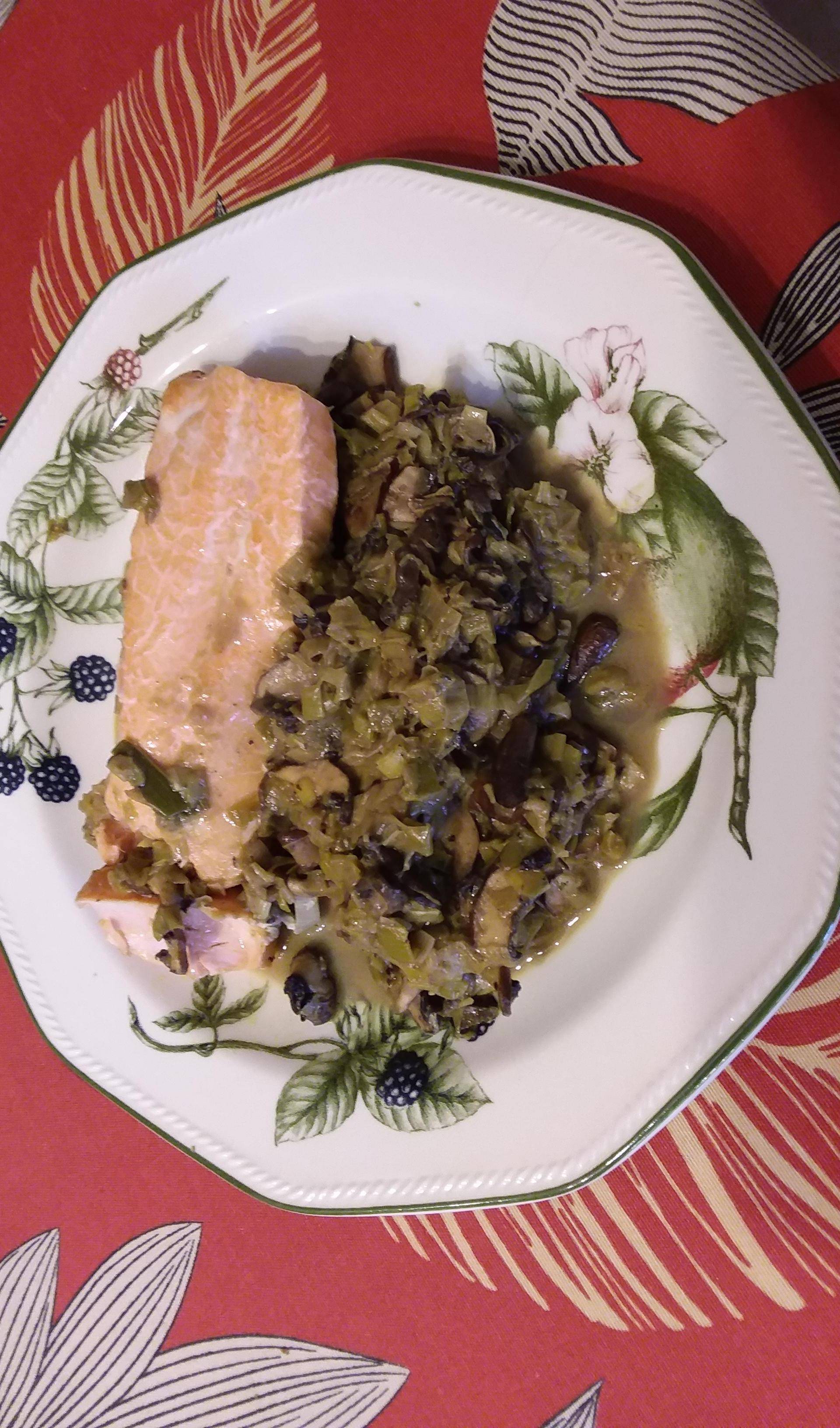 Mettre les poireaux dans le panier, ajouter 200ml d'eau, mettre le cookeo sur cuisson sous pression pendant 5 minures puis ajouter les champignons, 5 minutes de plus (temps de cuisson poireaux et champignons 10 minutes) ensuite vider l'eau