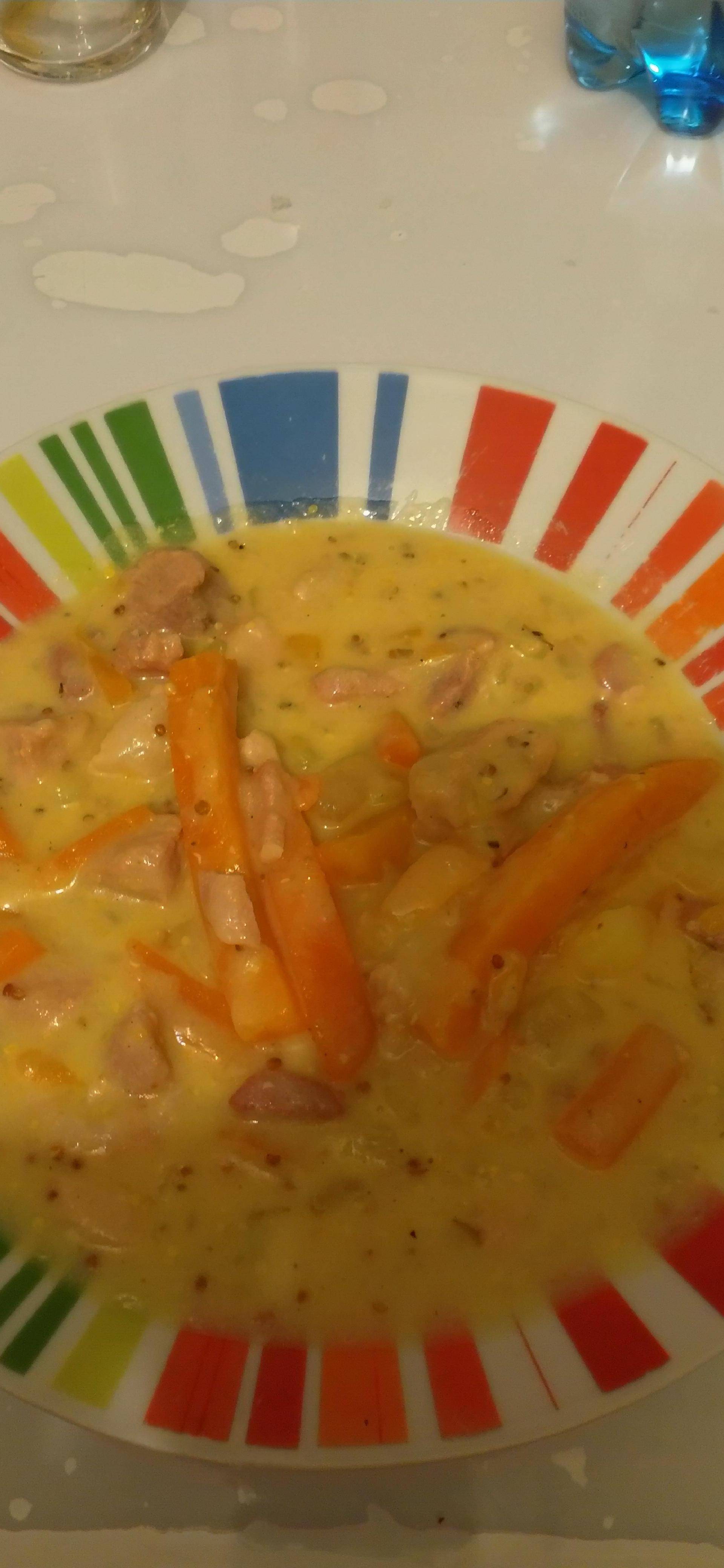 Ajouter les carottes bien remuer,le vin blanc, l'eau,le fond de veau,et les épices.