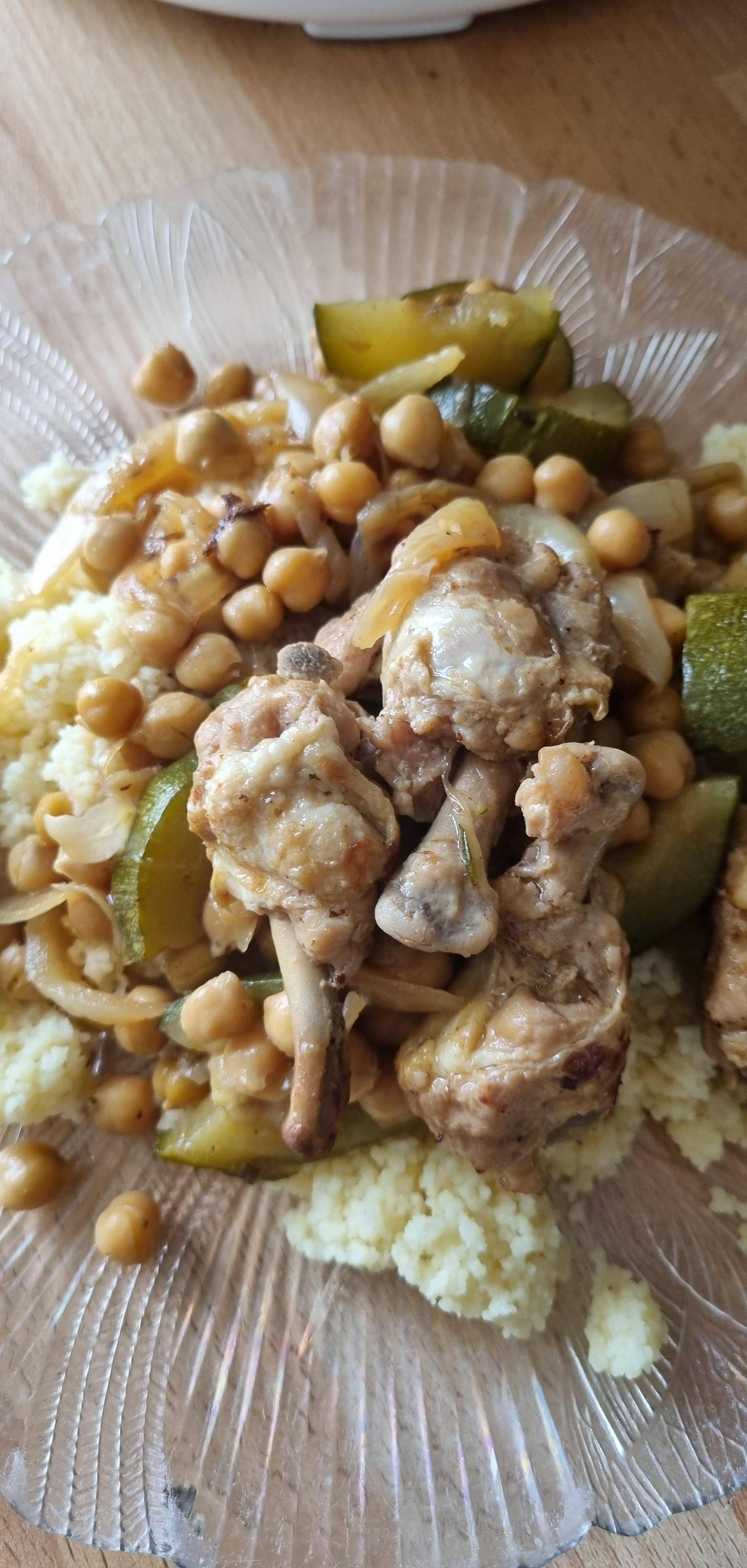 Rajouter le cube émietté, l’eau, les olives , les pois chiche , bien remuer le tout et lancer sous pression 15 minutes